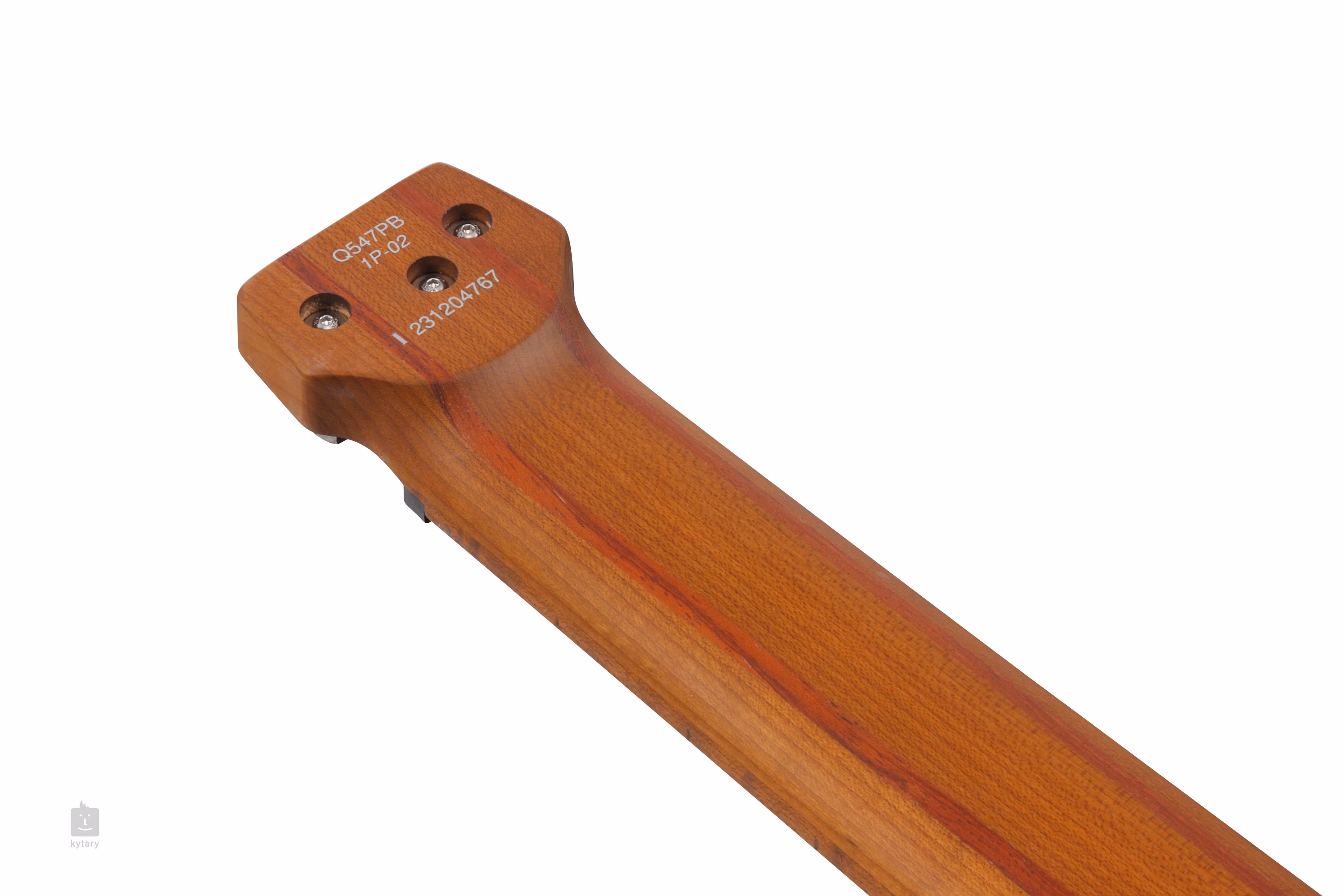 Der siebensaitige Q547PB COL-Korpus aus Nyatoh-Holz ist mit einer Pappel-Maserdecke furniert und in Cosmic Blue Low Gloss lackiert. Der fünfteilige Hals aus hitzebehandeltem (oder, wenn Sie es vorziehen, gebackenem) Ahorn und exotischem Bubinga ist mit einem Griffbrett aus veredeltem Ahorn (ebenfalls hitzebehandelt) verleimt, das mit vierundzwanzig Jumbo-Edelstahlbünden ausgestattet ist. Die Orientierung auf dem Griffbrett wird durch Perlmutt-Positionspunkte und seitliche Leuchtpunkte erleichtert, die auch in der Dämmerung einen perfekten Überblick über die Bewegung auf dem Griffbrett geben.