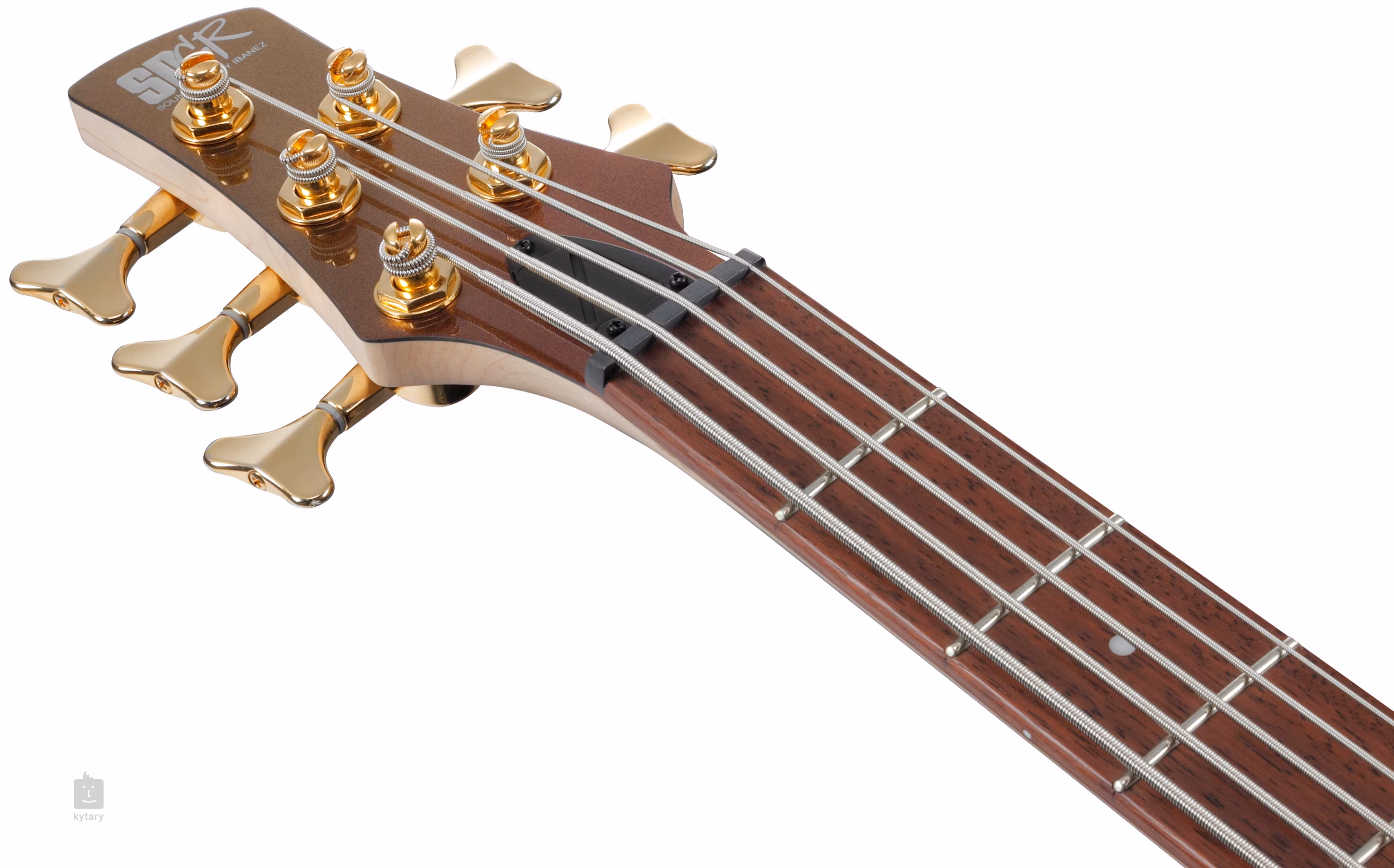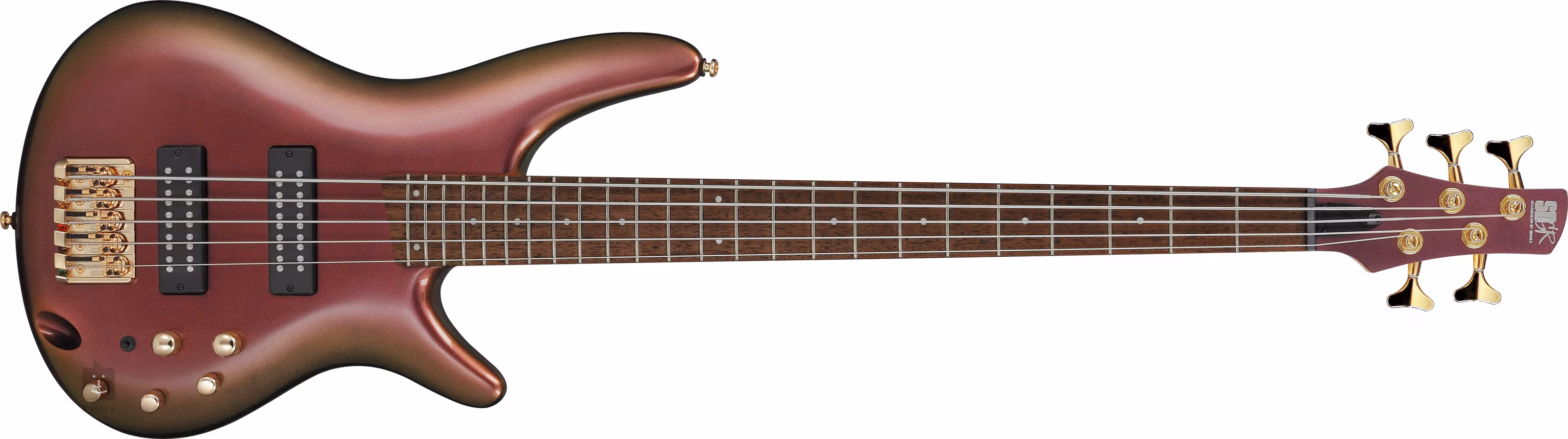 Das gilt auch für den fünfsaitigen Ibanez SR305EDX Rose Gold Chameleon Bass mit einem Nyatoh-Korpus, einem schnellen fünfteiligen Hals aus Ahorn und Walnuss und einem Jatoba-Griffbrett mit 24 Medium-Bünden.