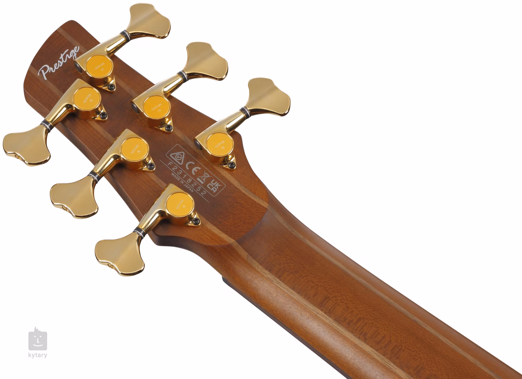Für eine stabile Stimmung sorgen der Einbau der Saiten in hochwertige Gotoh-Mechaniken und eine Kopfplatte vom Typ MR5S mit einer Saitenteilung von 16,5 Millimetern und der Möglichkeit der individuellen Tonhöheneinstellung innerhalb von +/- 1,5 Millimetern. Die schöne Verarbeitung wird durch die goldene Hardware, das Mocha-Finish und die Leuchtpunkte auf dem Griffbrett unterstrichen.