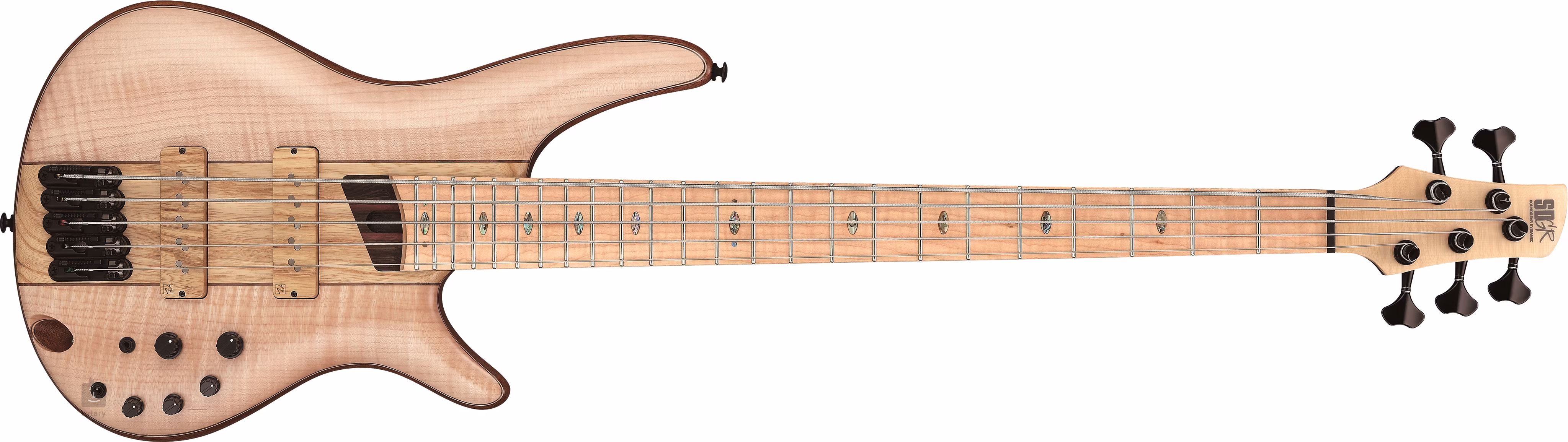 Der Ibanez SR5FMDX2 E-Bass bietet modernen Spielern außergewöhnlichen Sound und Design. Die Nordstrand Big Single-Tonabnehmer mit Holzgehäuse liefern einen kraftvollen, aggressiven Ton, während sie die für Single-Coil-Tonabnehmer charakteristische Klarheit beibehalten. Der Korpus aus geflammtem Ahorn und afrikanischem Mahagoni liefert einen satten, mitteltiefen Sound mit einer schönen Maserung.