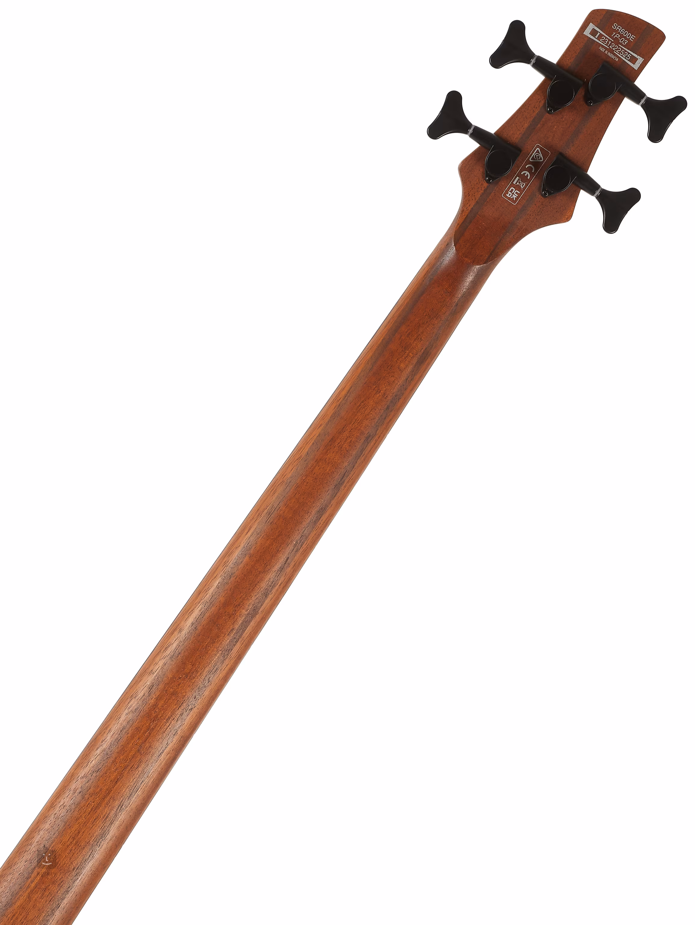 Die Hardware ist in mattem Schwarz gehalten, und die Saiten sind in einer massiven Accu-Cast B500-Kopfplatte mit extragroßen Löchern montiert, die selbst die dicksten Saiten aufnehmen können. Die Steine in der Kopfplatte sind außerdem gegen seitliche Bewegungen geschützt. Präzisionsstimmmechaniken mit großen Pins ermöglichen ein komfortables Stimmen.
