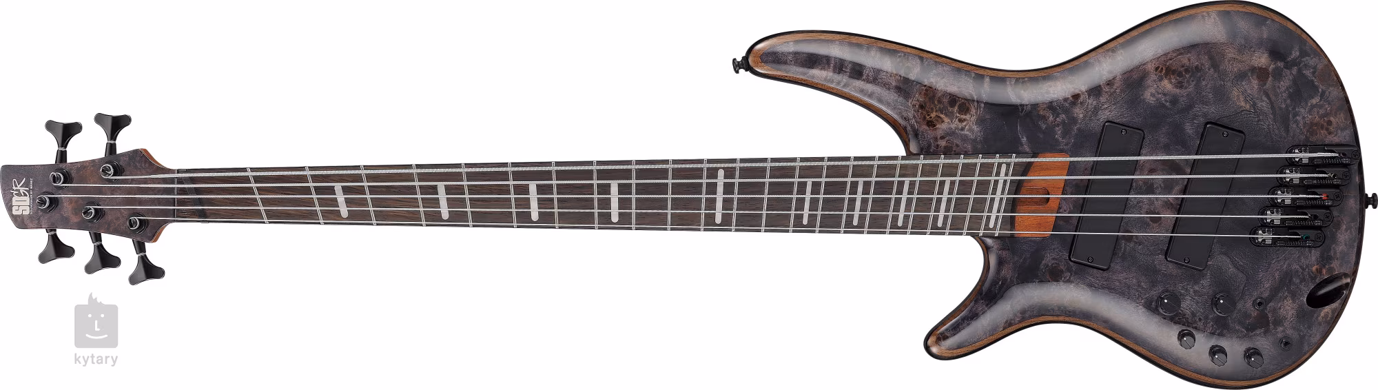Der Ibanez SRMS805L ist ein fünfsaitiger Linkshänder-Bass mit Multi-Scale-Konstruktion, die für eine ausgewogene Saitenspannung, verbesserten Spielkomfort und einen offenen, lebendigen Ton sorgt. Der Hals besteht aus einer Kombination von fünf Lagen Jatoba und Walnuss, die für ausgezeichnete Festigkeit und Stabilität sorgen und gleichzeitig ein schlankes Profil für schnelle Spielbarkeit bieten. Das Panga-Panga-Griffbrett trägt zu straff definierten Bässen, satten Mitten und knackigem Attack in den Höhen bei.