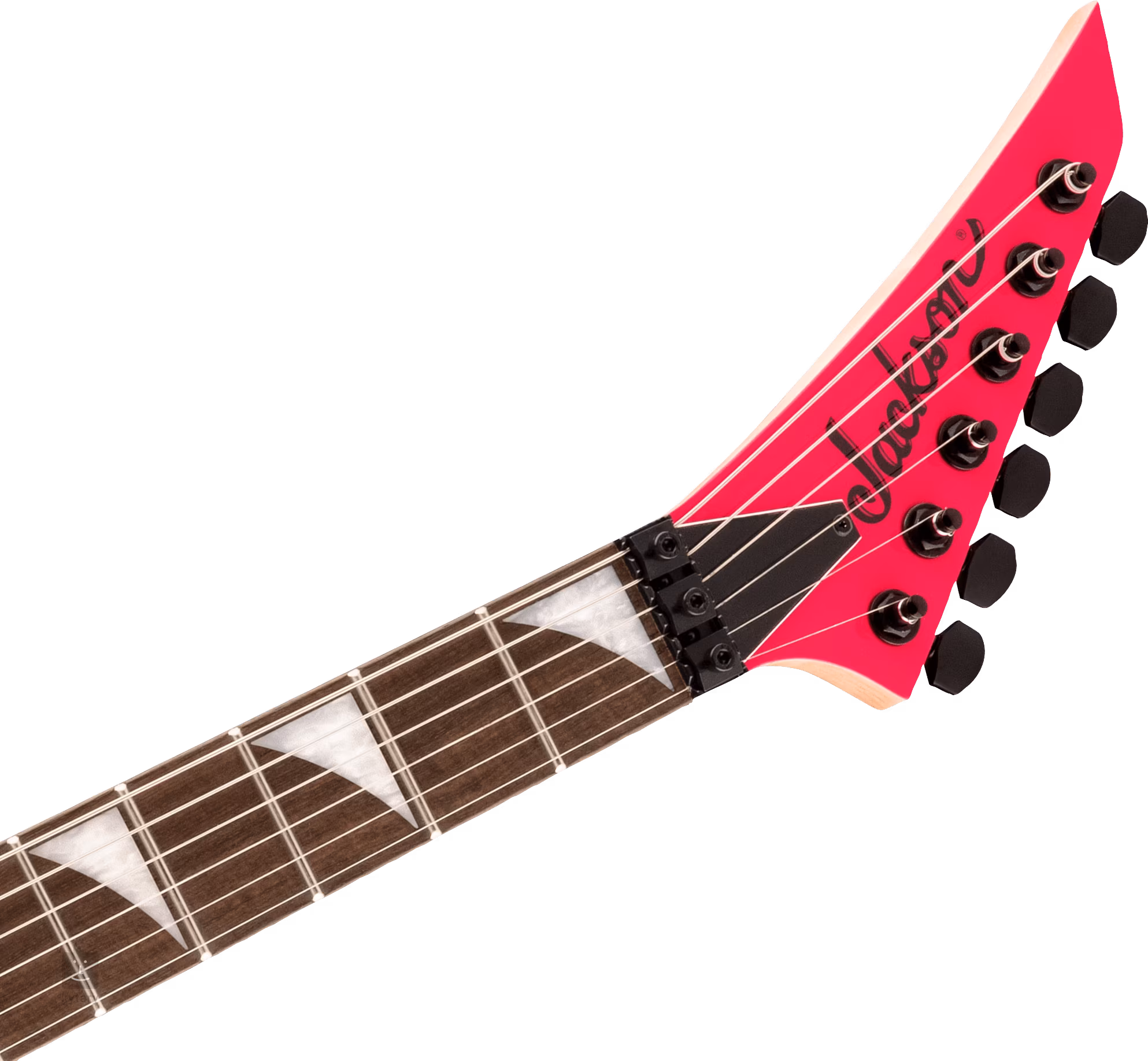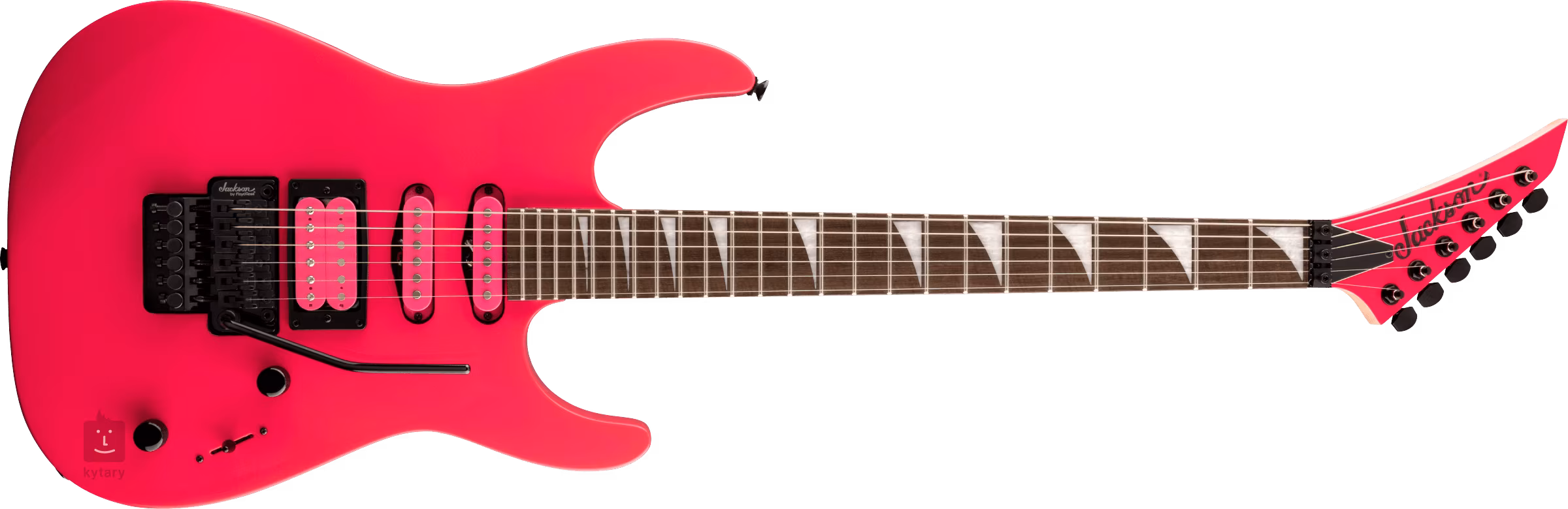 Der Korpus des DK3XR HSS Neon Pink ist aus Nyatoh-Holz gefertigt. Ein Feigengriffbrett mit vierundzwanzig Jumbo-Bünden ist auf einen verschraubten Ahornhals geklebt, der mit Graphitstreben verstärkt ist. Der kombinierte Radius flacht zum Korpus hin ab - das ermöglicht sowohl komfortables Riffing am Nullbund als auch bequemes, ultraschnelles Shredden in höheren Lagen. Der Spielkomfort wird auch durch den konturierten Hals und die abgerundeten Griffbrettkanten unterstützt. Positionsmarker aus Sharkfin-Perlenimitat erleichtern die Navigation auf dem Griffbrett.