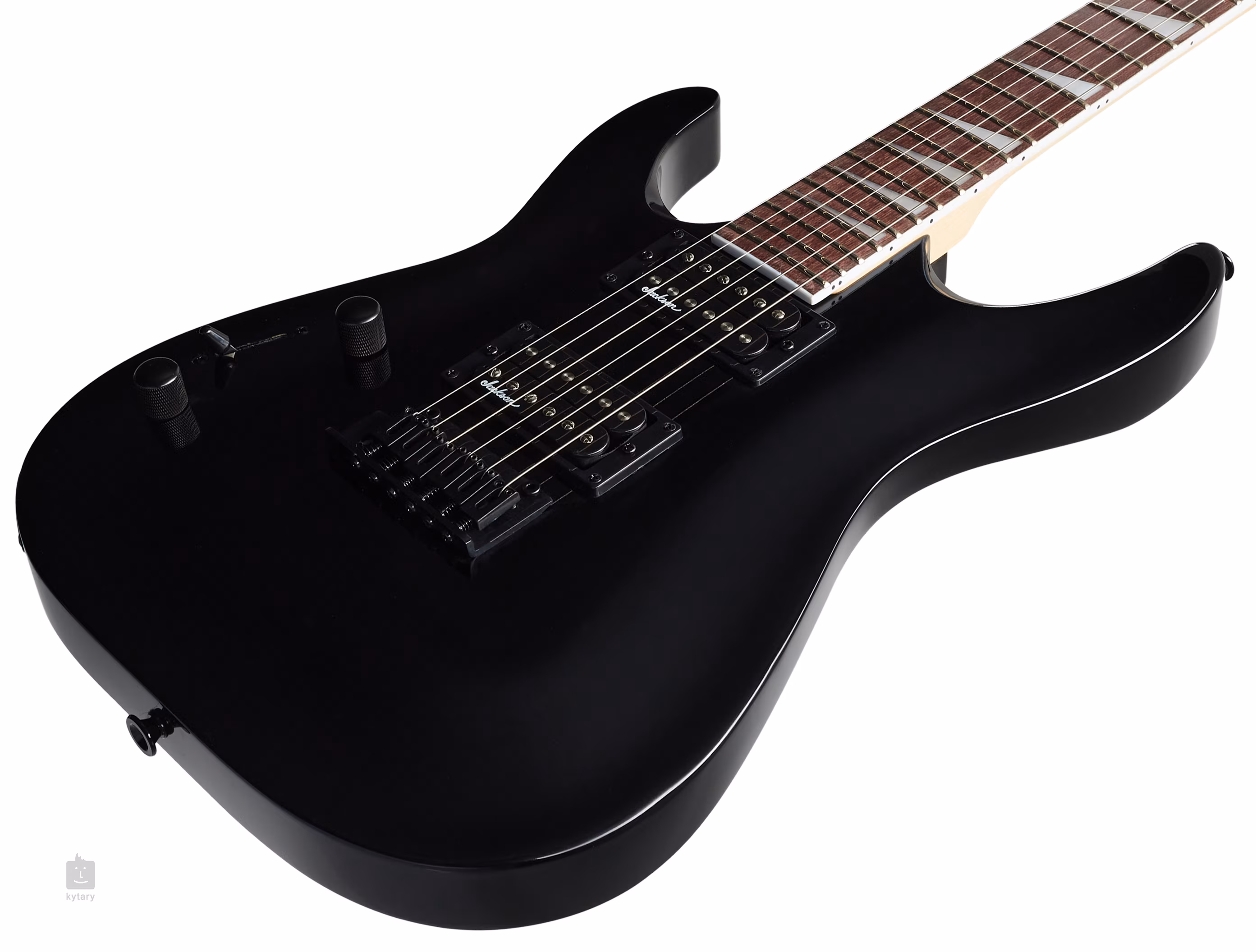 Zwei proprietäre Humbucker mit Keramikmagneten und einem hohen Ausgangssignal verleihen der Gitarre den saftigen Sound, der in der Metal- und Rockmusik so wichtig ist. Lautstärkepotentiometer, Tonregler und ein dreistufiger Tonabnehmerschalter dienen der Klanganpassung. Die Saiten werden in einem Single-Turn-Tremolo mit Zweipunktbefestigung und der die-cast-Mechanik des Unternehmens gehalten. Der stilvolle Look der Gitarre wird durch die glänzende schwarze Korpusfarbe und die schwarze Hardware noch unterstrichen.