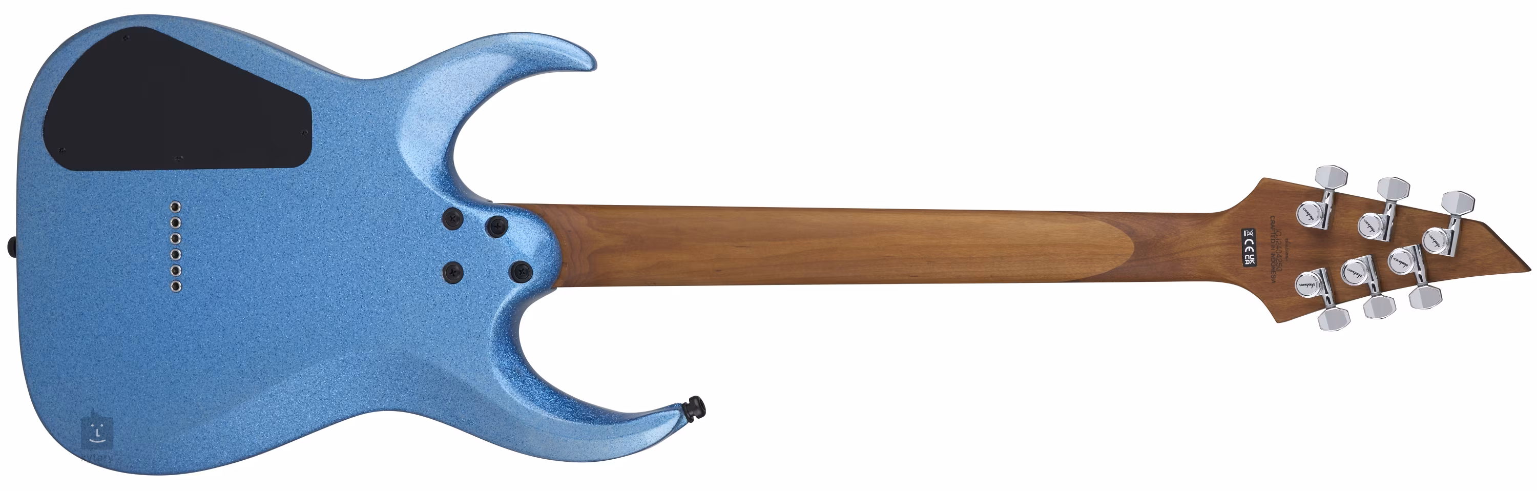 Für Stimmstabilität und gute Intonation sorgen die Saitenbefestigung in den arretierbaren Druckgussantrieben der Firma und der durchgehende Jackson HT6-Saitenhalter.