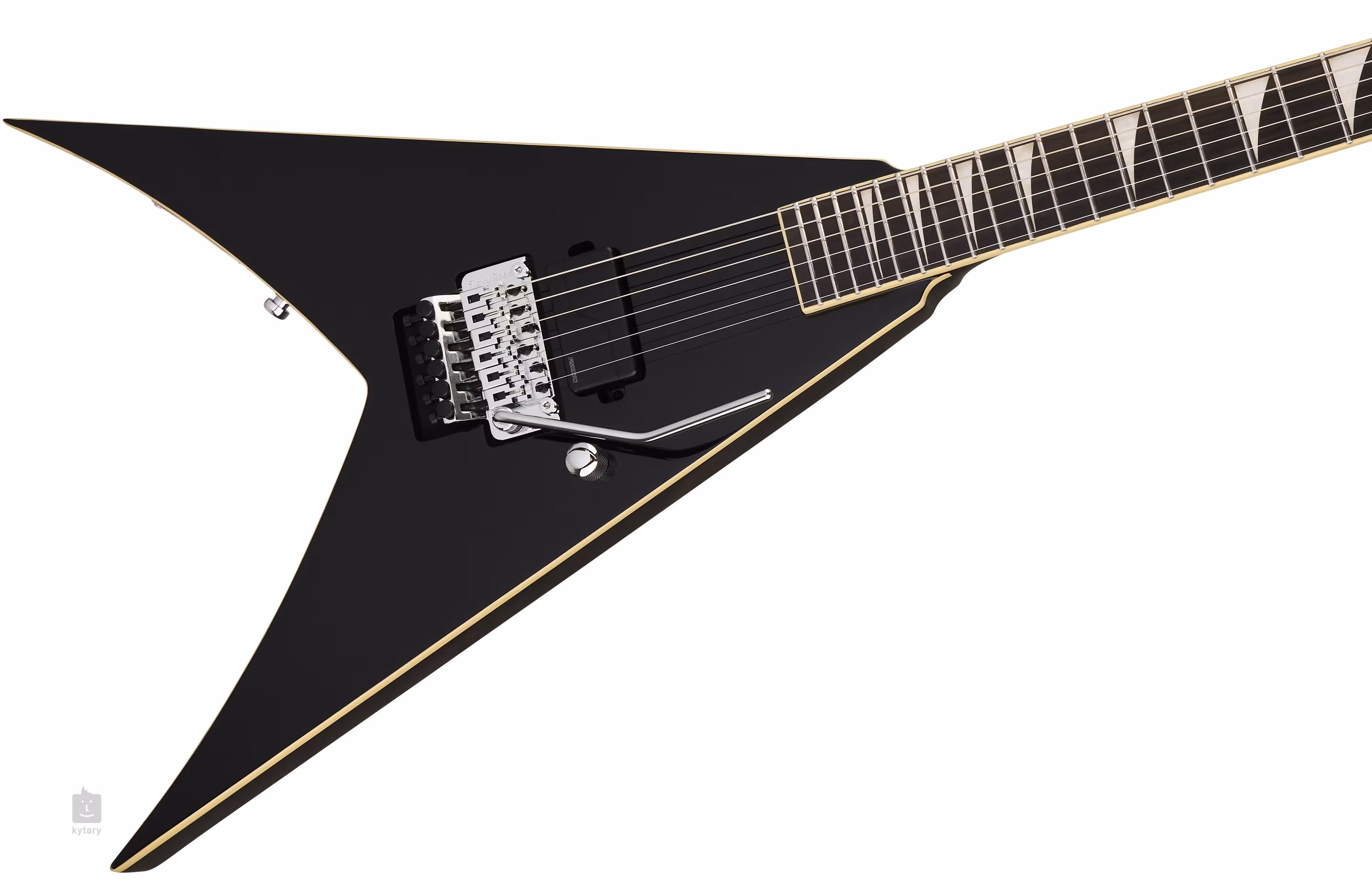Die Konstruktion des Pro Plus LE Pure Metal King V KV1A EB Gloss Black Modells besteht aus Pappelholzflügeln und einem durchgehenden Hals aus drei Stücken Ahorn, die mit Graphitverstrebungen verstärkt sind. Diese Lösung hat einen positiven Effekt auf das Sustain des Instruments. Das Ebenholz-Griffbrett ist mit vierundzwanzig Jumbo-Bünden aus Edelstahl ausgestattet. Sein Radius flacht zum Korpus hin ab - das ermöglicht sowohl komfortables Riffing am Nullbund als auch bequemes ultraschnelles Shredden in höheren Lagen. Positionsmarker aus Perlmutt-Imitat im sharkfin-Design erleichtern die Orientierung auf dem Griffbrett.