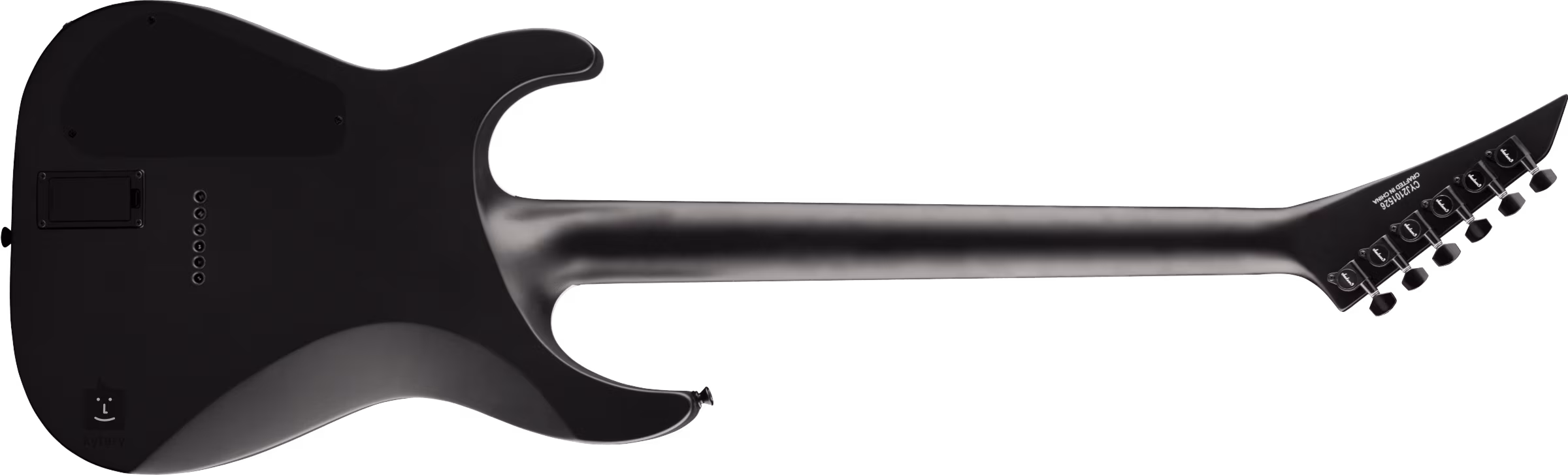 Die Konstruktion der Gitarre besteht aus Nyatoh-Holzflügeln und einem durchgefrästen Ahornhals, der mit Graphitbeleistung verstärkt ist. Diese Konstruktion wirkt sich positiv auf das Sustain des Instruments aus. Das Feigengriffbrett ist mit vierundzwanzig Jumbo-Bünden ausgestattet. Der Radius flacht zum Korpus hin ab - das ermöglicht sowohl komfortables Riffspiel am Nullbund als auch bequemes, ultraschnelles Shredden in höheren Lagen. Positionsmarkierungen aus Perlmuttimitat Piranha Tooth erleichtern die Navigation auf dem Griffbrett.