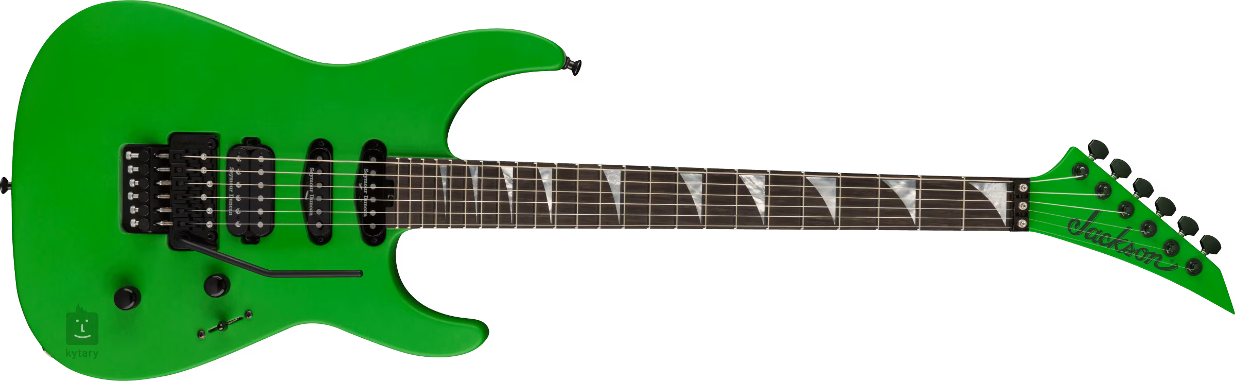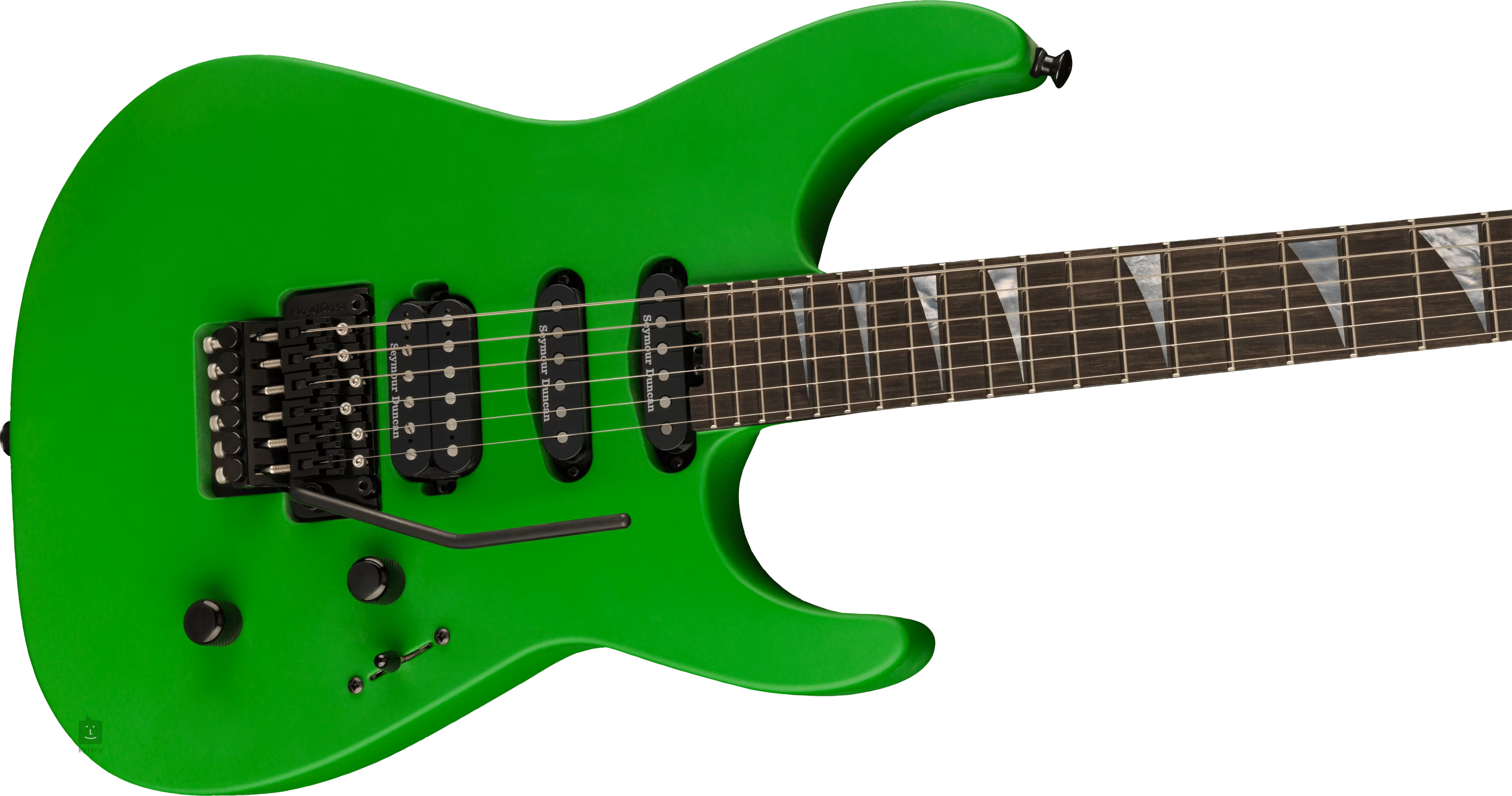 Die Konstruktion der American Series Soloist SL3 Satin Slime Green besteht aus einem Korpus aus Erle und einem dreiteiligen Ahornhals. Ein Paar Graphit-Verstärkungen garantieren die Stabilität des Halses. Das Ebenholz-Griffbrett ist mit vierundzwanzig Jumbo-Bünden und invertierten Perlmutt-Positionsmarkern im Sharkfin-Design ausgestattet. Der Griffbrettradius flacht zum Korpus hin ab - das ermöglicht sowohl komfortables Riffing am Nullbund als auch bequemes, ultraschnelles Shredden in höheren Lagen. Die Orientierung selbst in den dunkelsten Ecken der Bühne wird durch die leuchtenden Punkte an der Seite erleichtert.
