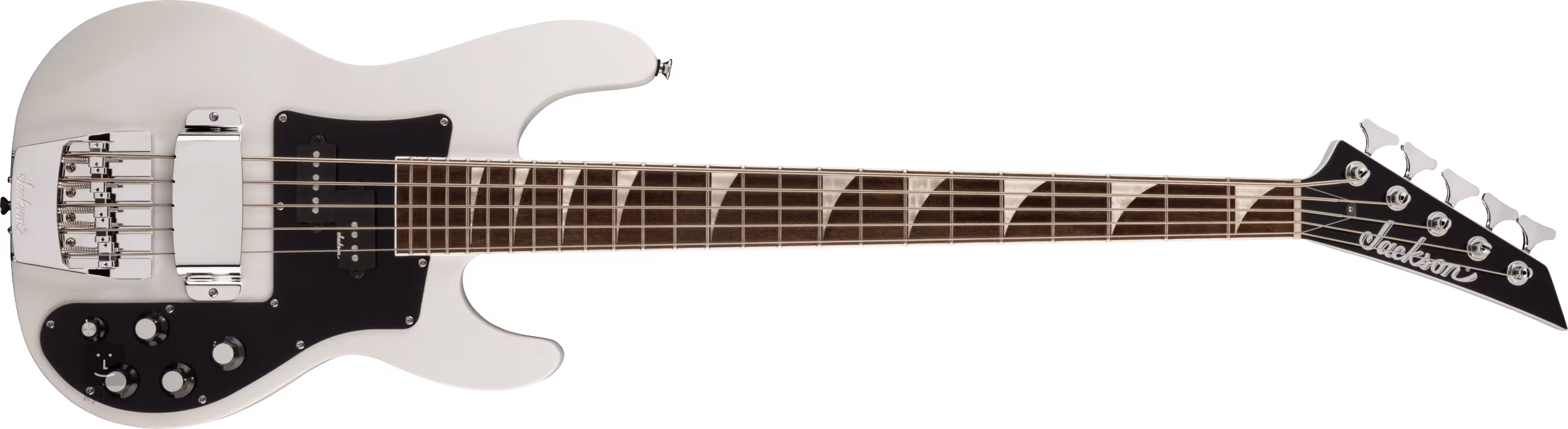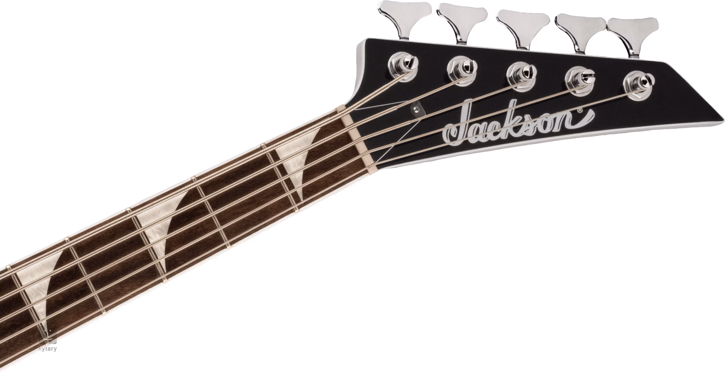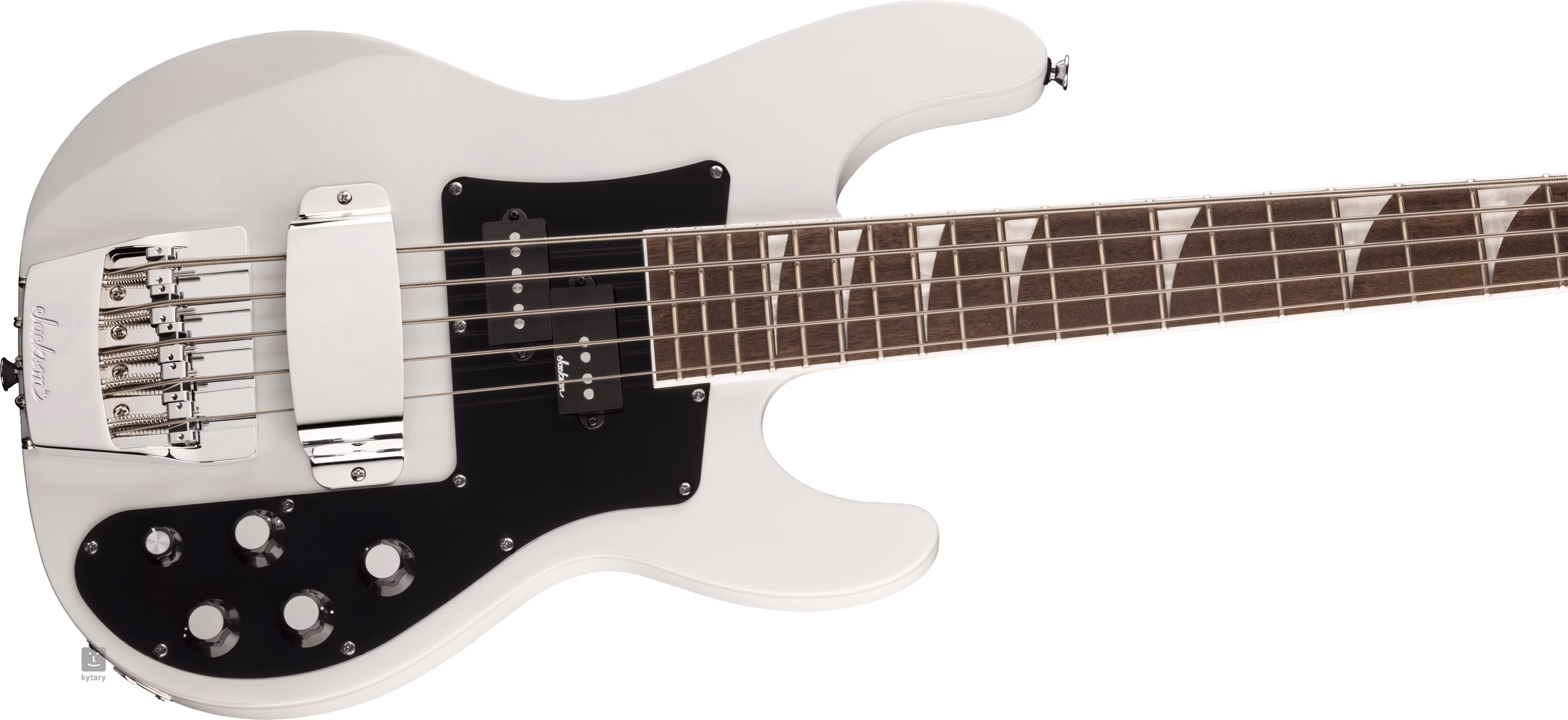 Die Saiten sind in einer massiven Jackson HiMass Kopfplatte verankert, die auf natürliche Weise den Attack und das Sustain des Tons akzentuiert. Die Druckgussmechanik sorgt für eine zuverlässige Stimmung. Zwei PJ-Tonabnehmer mit aktiver Elektronik kümmern sich um die Tonabnahme, und der Klang kann mit zwei Lautstärkepotentiometern und einem Dreiband-Equalizer fein abgestimmt werden.