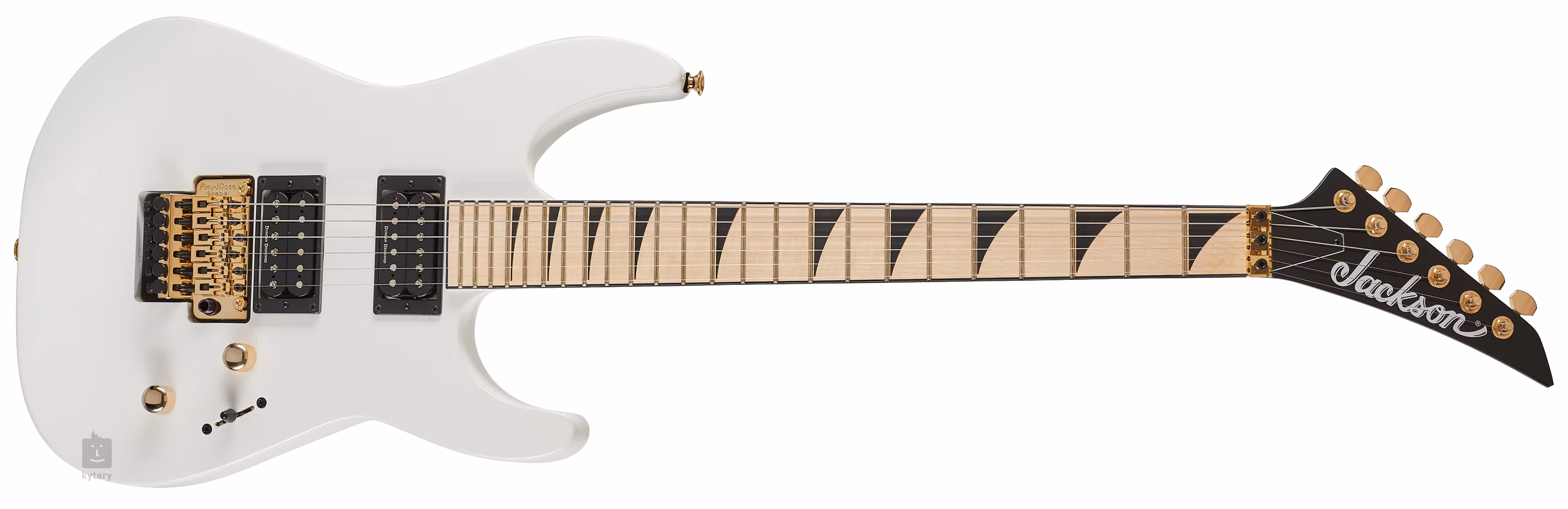 Zwei Duncan Designed HB-103 Humbucker (nach dem Vorbild der originalen SD SH-6 Distortion Pickups) mit Keramikmagneten und hohem Ausgangssignal geben der Gitarre den saftigen Sound, der in der Metal- und Rockmusik so wichtig ist. Lautstärkepotentiometer, Tonregler und ein dreistufiger Tonabnehmerschalter dienen der Klanganpassung. Die Saiten sind in den Die-Cast-Stimmmechaniken des Unternehmens und einem Floyd-Rose-Tremolo mit doppelter Umkehrung untergebracht, mit dem Sie Ihrem Spiel beeindruckende Klangeffekte verleihen können. Die Eleganz der Gitarre wird durch den Kontrast zwischen dem schneeweißen Korpus, der schwarzen Kopfplatte und der goldenen Hardware unterstrichen.