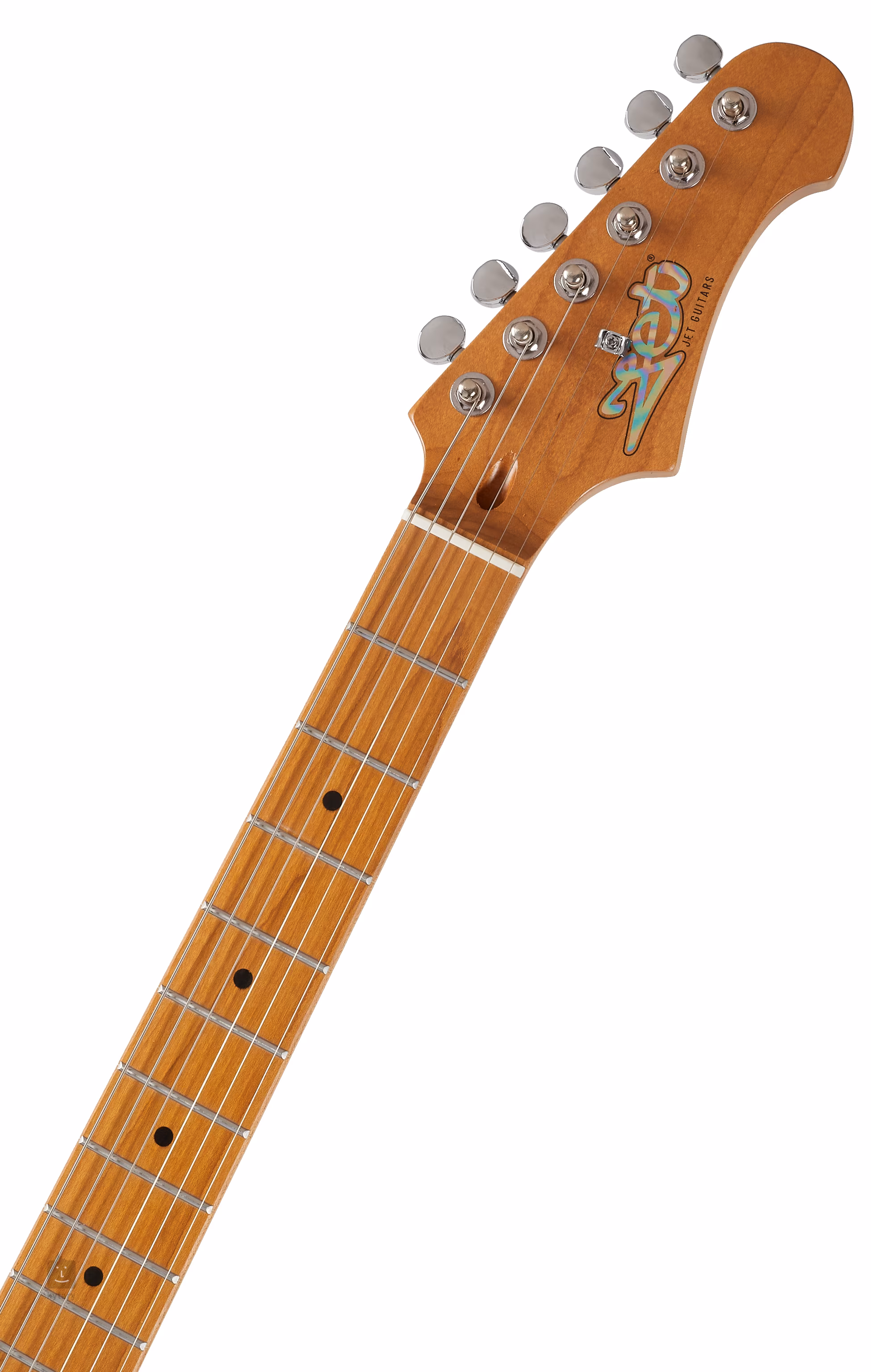 Die JET JS-400 SB ist eine E-Gitarre, die das Design, die Handwerkskunst und die traditionellen Eigenschaften der ST-Modelle zu einem erschwinglichen Preis bietet. Der Korpus aus Lindenholz ist mit einer glänzenden Lackierung überzogen. Der geschraubte Hals und das Griffbrett aus kanadischem Ahorn wurden vor dem Zusammenbau wärmebehandelt, was das Holz stabiler macht und ihm das Aussehen/Aura von Hälsen/Griffbrettern verleiht, die schon seit Jahren gespielt werden.