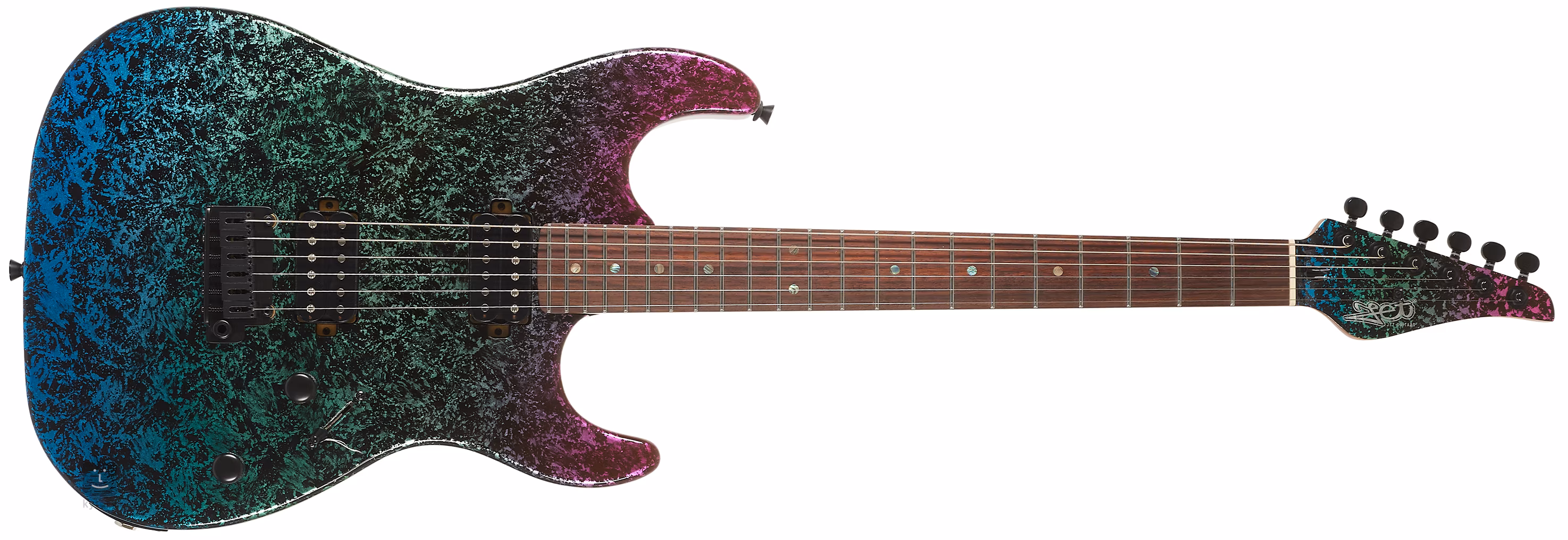Zwei speziell gewickelte Humbucker mit hohem Ausgangssignal (20k Ohm Kiel) bieten einen richtig heißen Sound, den Sie in zeitgenössischem Rock, Metal und vielen anderen Genres schätzen werden. Mit den Lautstärke- und Tonreglern und dem dreistufigen Pickup-Schalter lässt sich der Klangcharakter einstellen. Die Saiten werden in Locking-Mechaniken und einem Single-Turn-Tremolo gehalten.