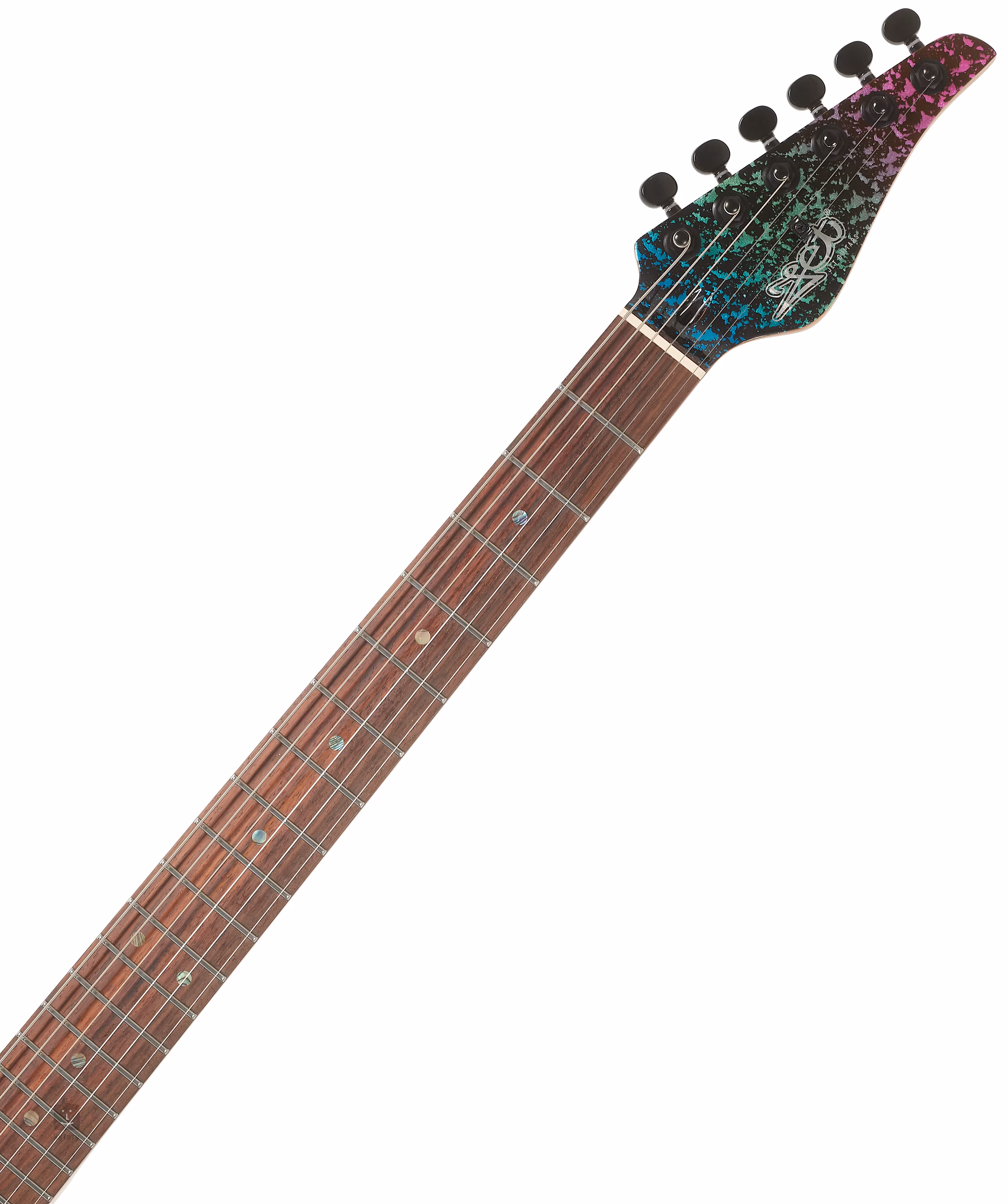 Die Jet JS-50 Art E-Gitarre ist Teil der Elite-Serie, die das Beste der Marke Jet bietet. Der Mahagonikorpus der Gitarre ist mit einer spektakulären Art Blue-Lackierung verziert. Der Ahornhals (quarterawn) ist auf ein Griffbrett aus indischem Palisander mit zweiundzwanzig Bünden geklebt. Die Wärmebehandlung des Halses macht das Holz stabiler und verleiht ihm das Aussehen/Aura eines jahrelang gespielten Halses/Griffbretts. Die Orientierung auf dem Griffbrett wird durch Positionspunkte aus Perlmutt (White Shell) erleichtert.