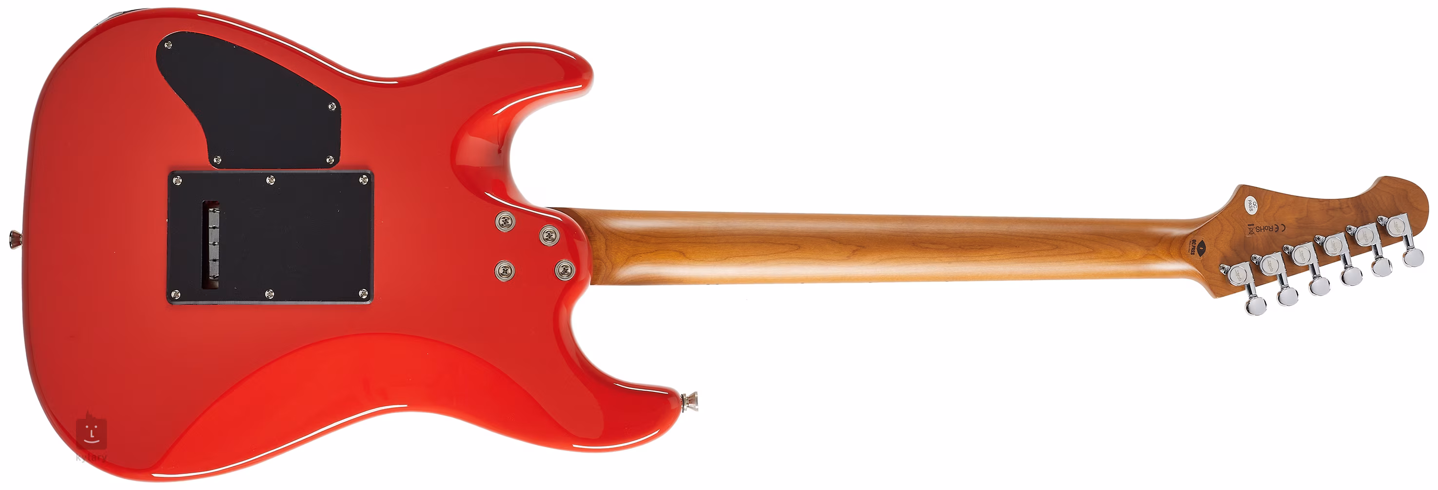 Die Jet JS-700 RD H E-Gitarre ist ein moderneres ST/Super ST Modell. Der Korpus der Gitarre ist aus Linde gefertigt. Der angeschraubte Hals und das Griffbrett aus kanadischem Ahorn wurden vor dem Zusammenbau wärmebehandelt, was das Holz stabiler macht und ihm das Aussehen/Aura eines jahrelang gespielten Halses/Griffbretts verleiht.