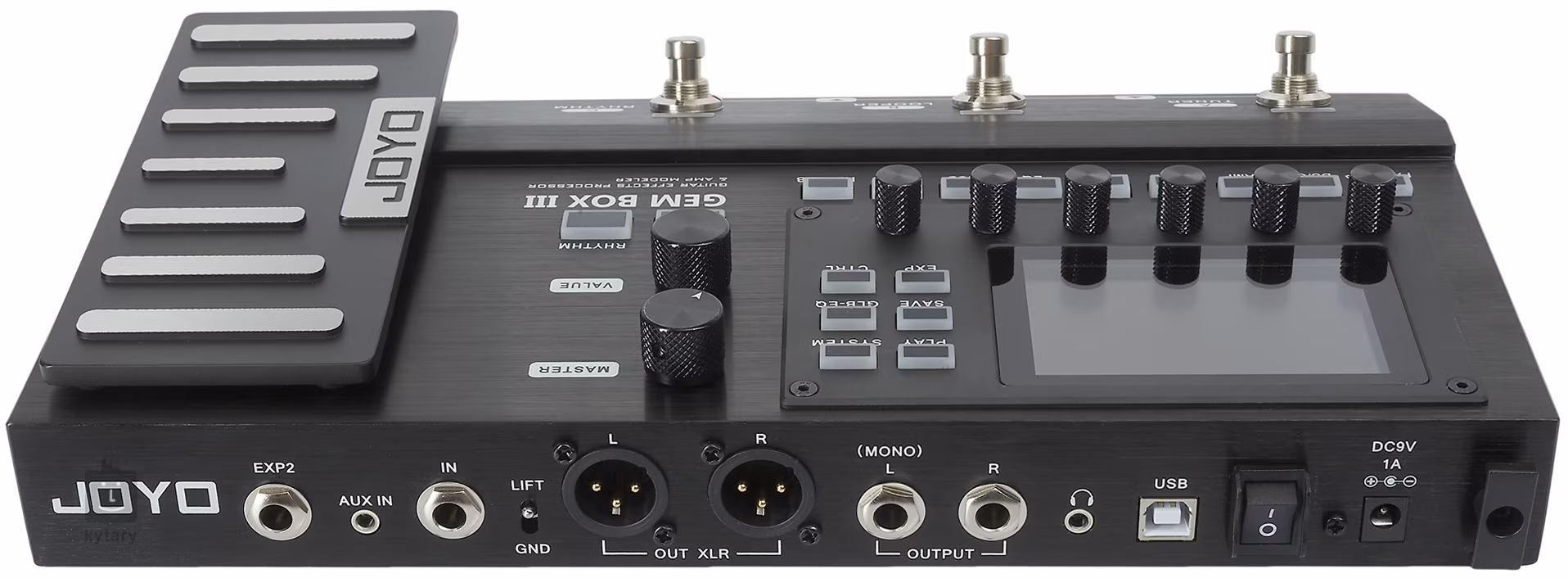 Gem Box III ist der luxuriöseste Gitarren-Multi-Effekt der chinesischen Marke Joyo. Es bietet 157 digitale Effekte (FX/Comp, Distortion/Overdrive, Noise Suppressor, EQ, Modulation, Delay, Reverb), 61 Gitarrenvorverstärkermodulationen und 26 IR-Lautsprechersimulationen (benutzerdefinierte IRs können aufgenommen werden - 16/24/32bit, volle Samplerate, WAV-Format) sowie insgesamt 300 Firmen-Presets in neun Effekt-Subsets. Eine intuitive Benutzeroberfläche mit übersichtlichem Display ermöglicht das einfache Editieren, Speichern und Abrufen einzelner Presets und die Organisation der Effektreihenfolge innerhalb eines Signalwegs.