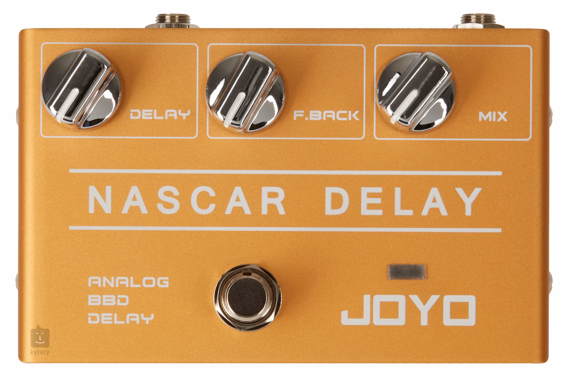 Das R-10 Nascar Delay ist ein Gitarreneffekt, der von klassischen BBD Analog Delay Pedalschaltungen inspiriert ist. Es bietet maximalen Bedienkomfort und klassische Delay-Effektformen, die sich für die Abwechslung von Gitarrensoli und Riffs eignen (maximale Delay-Zeit um 500 ms). Die gesamte Pedalelektronik ist in einem robusten Metallgehäuse untergebracht. Das Design des Gehäuses wird durch eine LED-Beleuchtung bereichert. Die Stromversorgung erfolgt über einen 9V-Adapter, ein Batteriebetrieb ist nicht möglich.