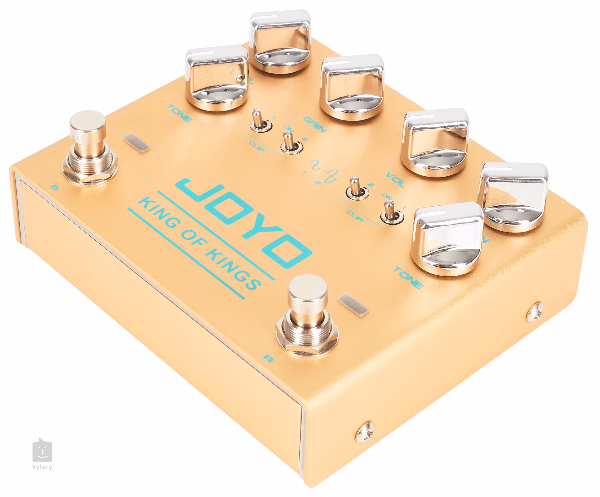 Der R-20 King of Kings ist ein zweikanaliger Overdrive-Effekt, der von subtiler warmer Übersteuerung über Blues-Rock-Crunch bis hin zu Vintage-Verzerrung (bei Aktivierung beider Overdrive-Schaltungen in Serie) alles bietet. Die Kanäle sind mit separaten Reglern und Schaltern (Diode Clipping, Feedback Circuit Clipping) ausgestattet, deren Einstellungen den Charakter des Sounds subtil verändern. Die gesamte Pedalelektronik ist in einem robusten Metallgehäuse untergebracht. Das Design des Gehäuses wird durch eine LED-Beleuchtung aufgewertet. Für die Stromversorgung ist ein 9V-Adapter erforderlich, ein Batteriebetrieb ist nicht möglich.