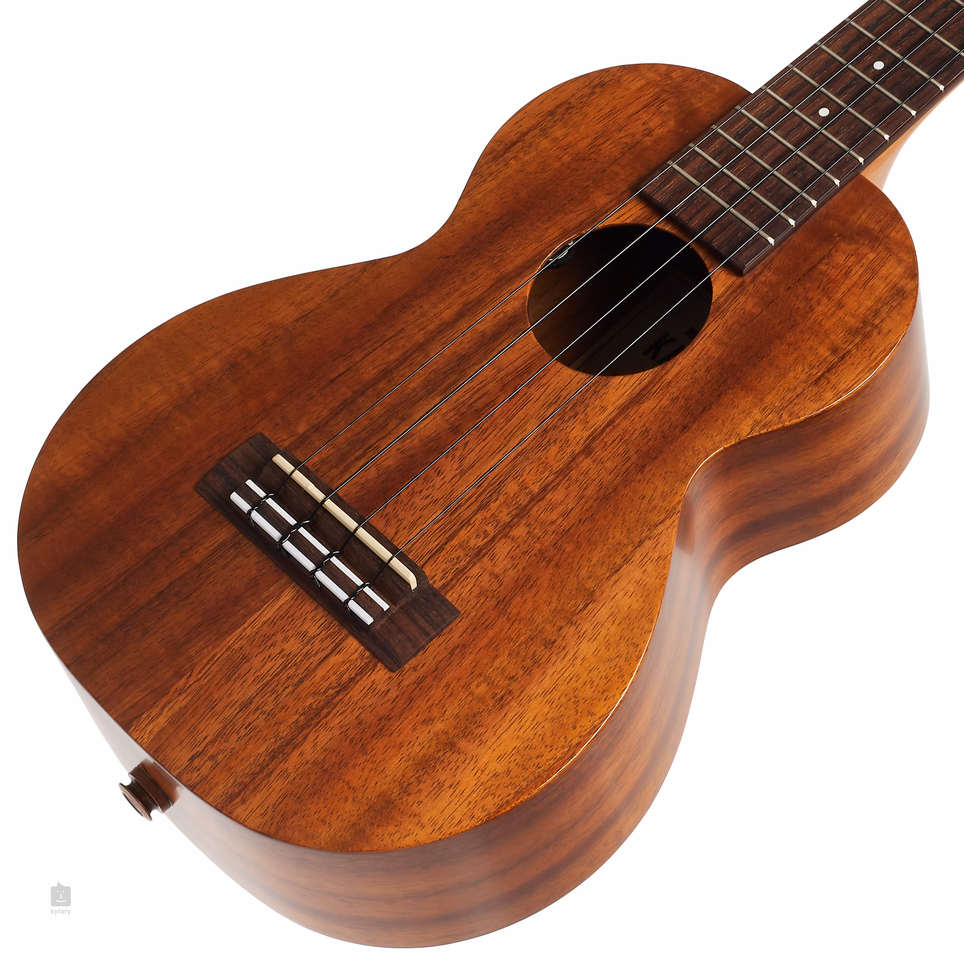 Die LR Baggs FIVE.O-Elektronik mit Element-Tonabnehmer, Lautstärkeregler im Resonanzboden des Instruments und Endpin-Vorverstärker bietet die Möglichkeit der Klangverstärkung. Die Ukulele wird in einem Kamala-Ukulele-Koffer geliefert.