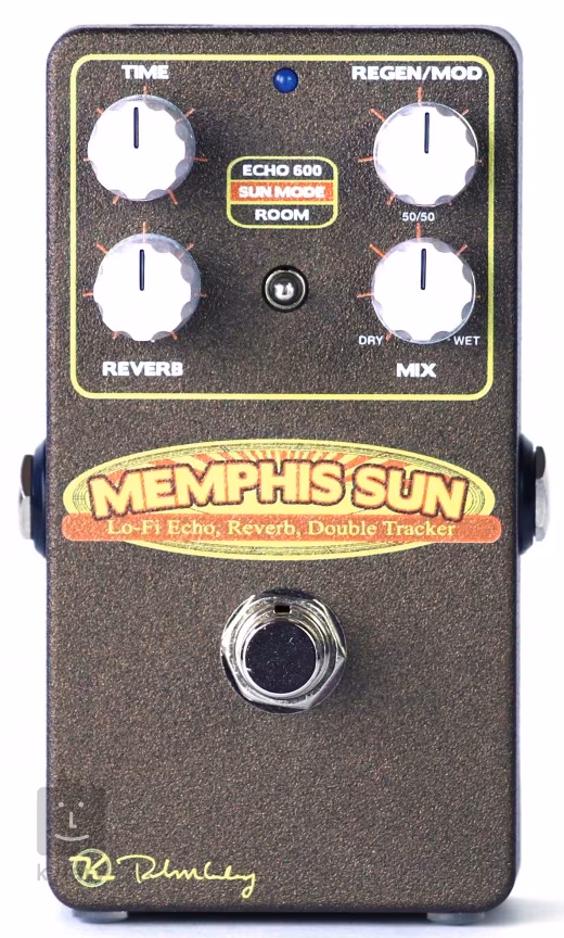 Das Memphis Sun der amerikanischen Marke Keeley ist ein Studio-Lo-Fi-Hall-, Echo- und Double-Tracker-Pedal, das Sie mit dem Charakter seiner einzelnen Sounds zuverlässig in das goldene Zeitalter des Rock'n'Roll, also in die 1950er Jahre, versetzt. Mit dem Schalter an der Vorderseite können Sie zwischen drei Soundmodi wählen - Slapback 600 bietet lange Lo-Fi-Echos mit einer Hommage an die Teufelsmusik in Form einer maximalen Verzögerungszeit von 666 Millisekunden, Sun Mode bietet ein kurzes Slapback-Echo und die Möglichkeit, einen Double-Tracking-Effekt von Gitarrenlinien/Tönen zu erzeugen, also Double-Tracking, der letzte Modus Room simuliert einen Studio-Hall. Die Regler Mix und Reverb bestimmen das Verhältnis von cleanem/verändertem Signal und die Länge des Halls, während die Funktionen der Potentiometer Time und Regen/Mod je nach gewähltem Audiomodus wechseln.
