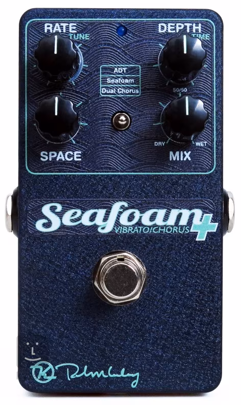 Der ADT-Mod, der vom Hersteller als True Chorus bezeichnet wird, verfügt über einen automatischen Verdoppler (eine Technologie, die im 30ms Double Tracker-Pedal entwickelt wurde), mit dem Sie die Flankenlinie verdoppeln/dreifachen können, wobei die Stimmung (0-21 Cent) der verdoppelten Stimme und die Länge der Audioverzögerung (0-21 ms) einstellbar sind. Mit dem Space-Regler können Sie den Gitarrensound mit einem Reverb-Effekt und im Bassmodus mit einem Flanger-Effekt anreichern (kann natürlich auch mit der Gitarre verwendet werden). Der Seafoam-Modus bietet einen satten Chorus mit einem sehr musikalischen Vibrato, d.h. er klingt ähnlich wie die analogen BBD-Chorus-Pedale (Bucket-Brigade Device). Der letzte Modus, Dual Chorus, ermöglicht die unabhängige Einstellung der Chorus-Effekte in den Höhen und Bässen, so dass man leicht den Gitarrensound erreichen kann, den z.B. Nirvana bei Come As You Are verwendet haben; der Bass-Dual-Chorus-Modus bietet eine Kombination aus Chorus in den Höhen und Tremolo-Effekt im Bass.