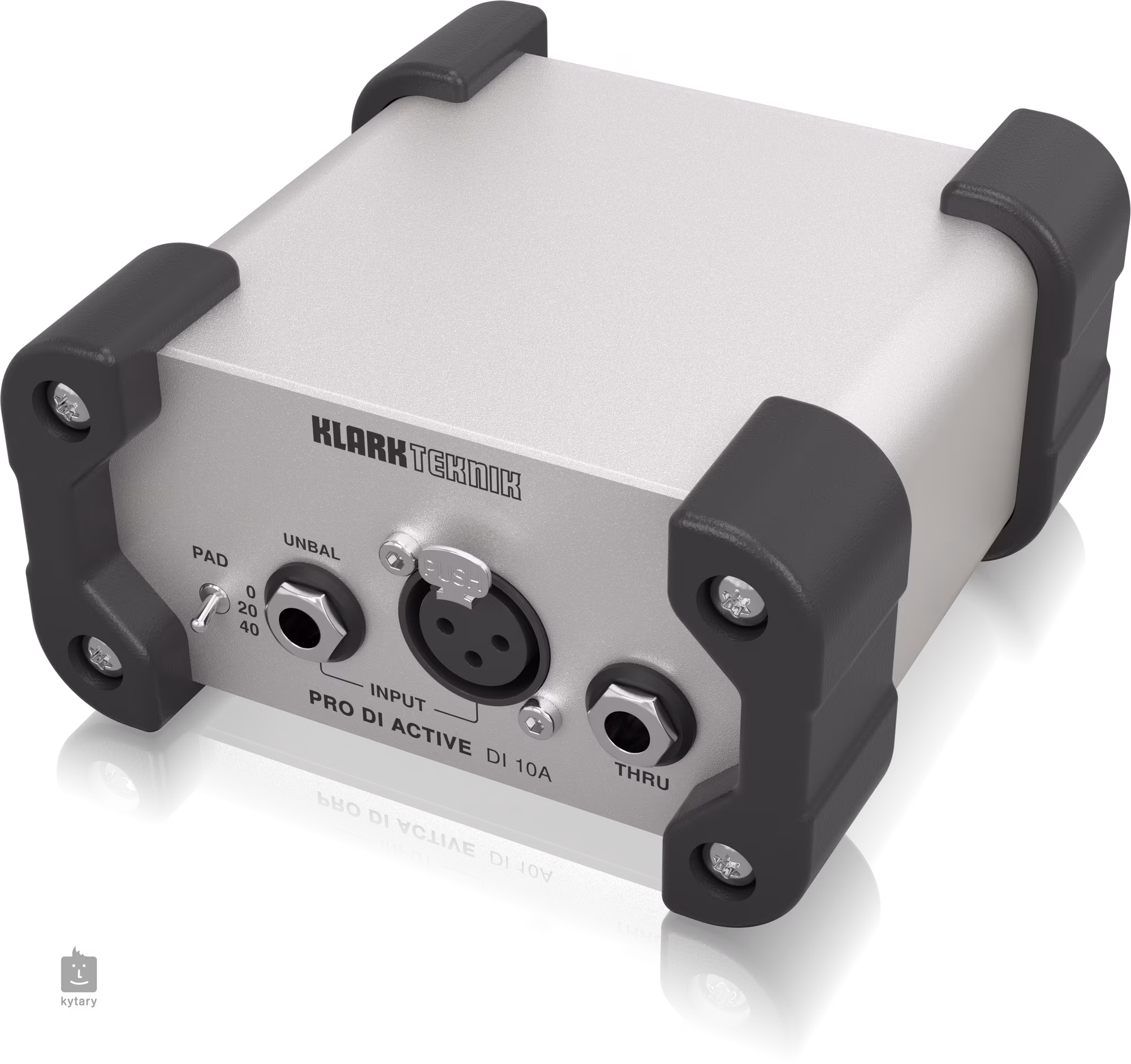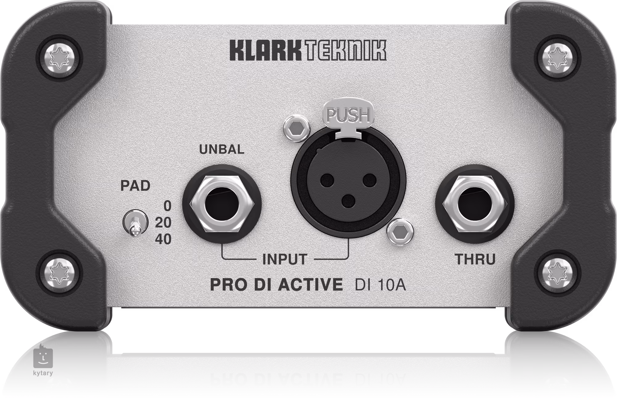Die KLARK TEKNIK DI 10A ist eine aktive DI-Box mit 48-V-Phantomspeisung oder Batteriespeisung (nicht im Lieferumfang enthalten), hochwertigen 6,3-mm-Klinken- und XLR-Neutrik-Anschlüssen, schaltbarer Eingangsdämpfung für Instrumenten-/Gerätesignalpegel, Midas-Übertragern für maximale Signalintegrität, schaltbarer Erdung und einem Aluminiumgehäuse.