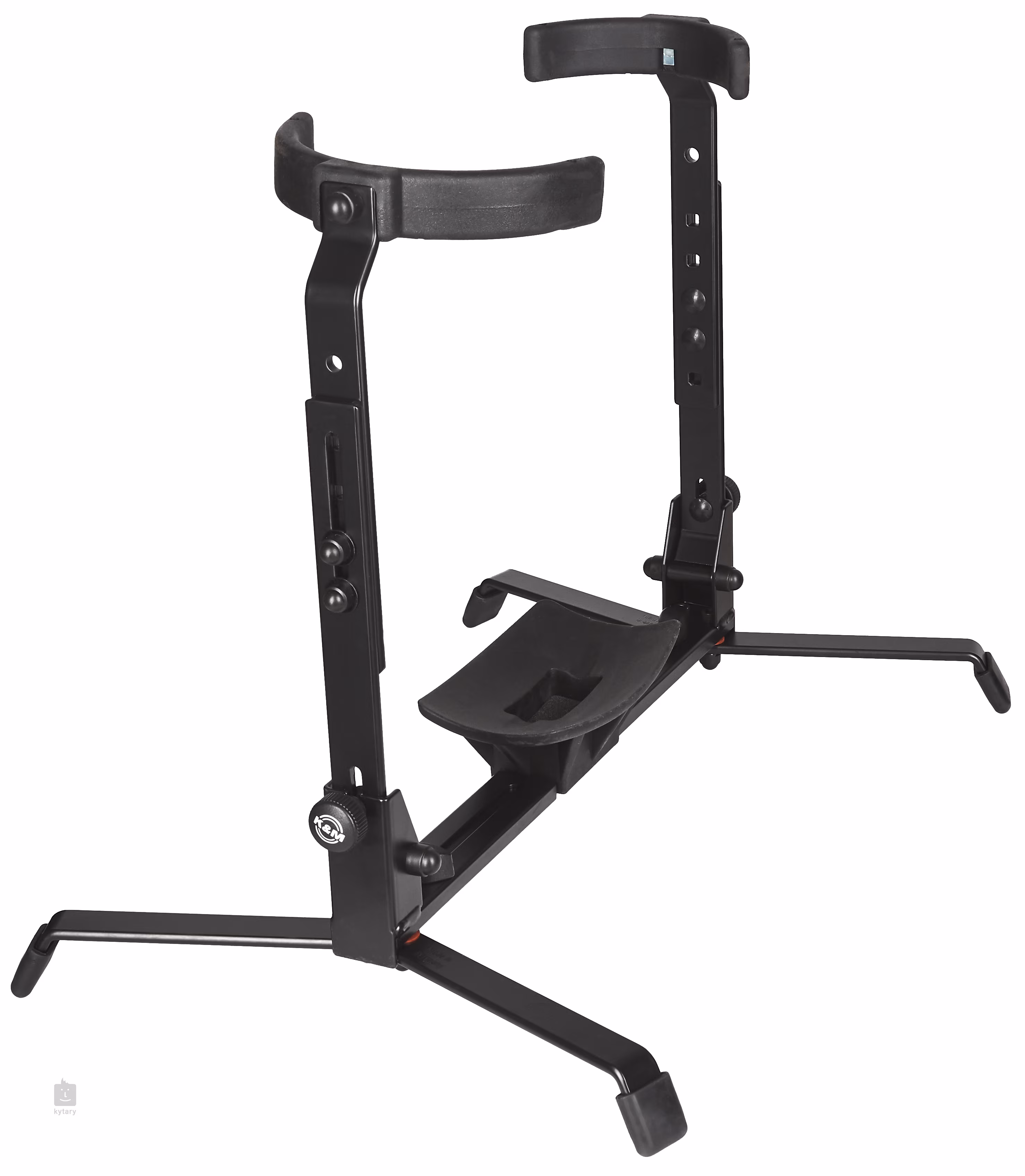 Stahlrohrständer mit verstellbarer Höhe und Breite. Dadurch lassen sich die Halterungen leicht an die Abmessungen des Instruments anpassen. Alle Teile, die mit den Instrumenten in Berührung kommen, sind aus gummiertem Material gefertigt, um Beschädigungen zu vermeiden.