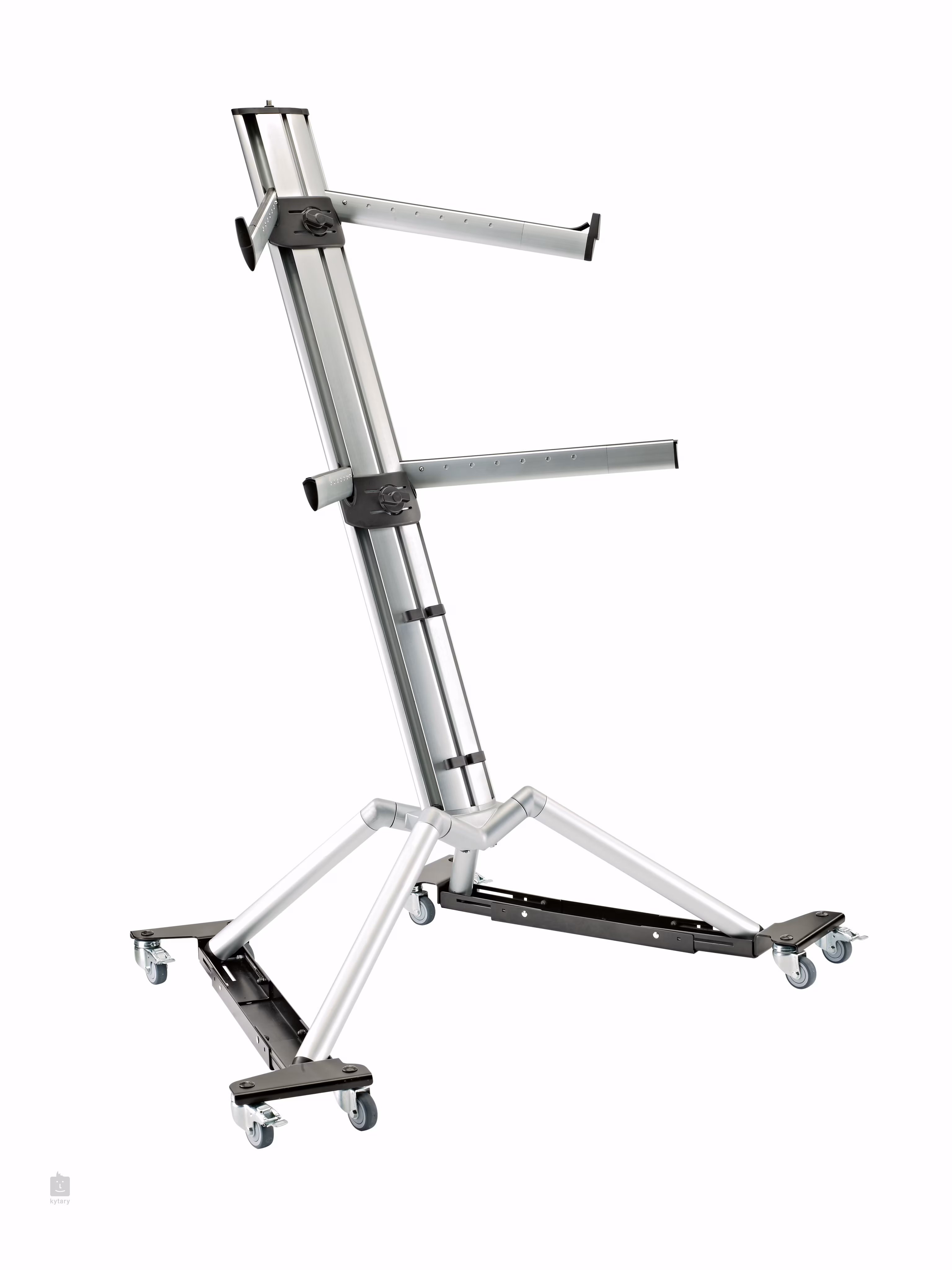 Ein einzigartiges bewegliches System für Keyboardständer, das den Transport Ihrer Tasten auf der Bühne, im Studio oder in Ihrem Zimmer vereinfacht. Für maximale Stabilität sind die Schienen mit vier Rollen ausgestattet, von denen zwei mit einem Bremssystem versehen sind. Die Schienen können von 50 - 80 cm verstellt werden, so dass sie an fast alle auf dem Markt erhältlichen Keyboardständer angepasst werden können. Die robuste Konstruktion besteht aus Metall, im Inneren der Schienen befinden sich Halterungen zur Befestigung der Standbeine.