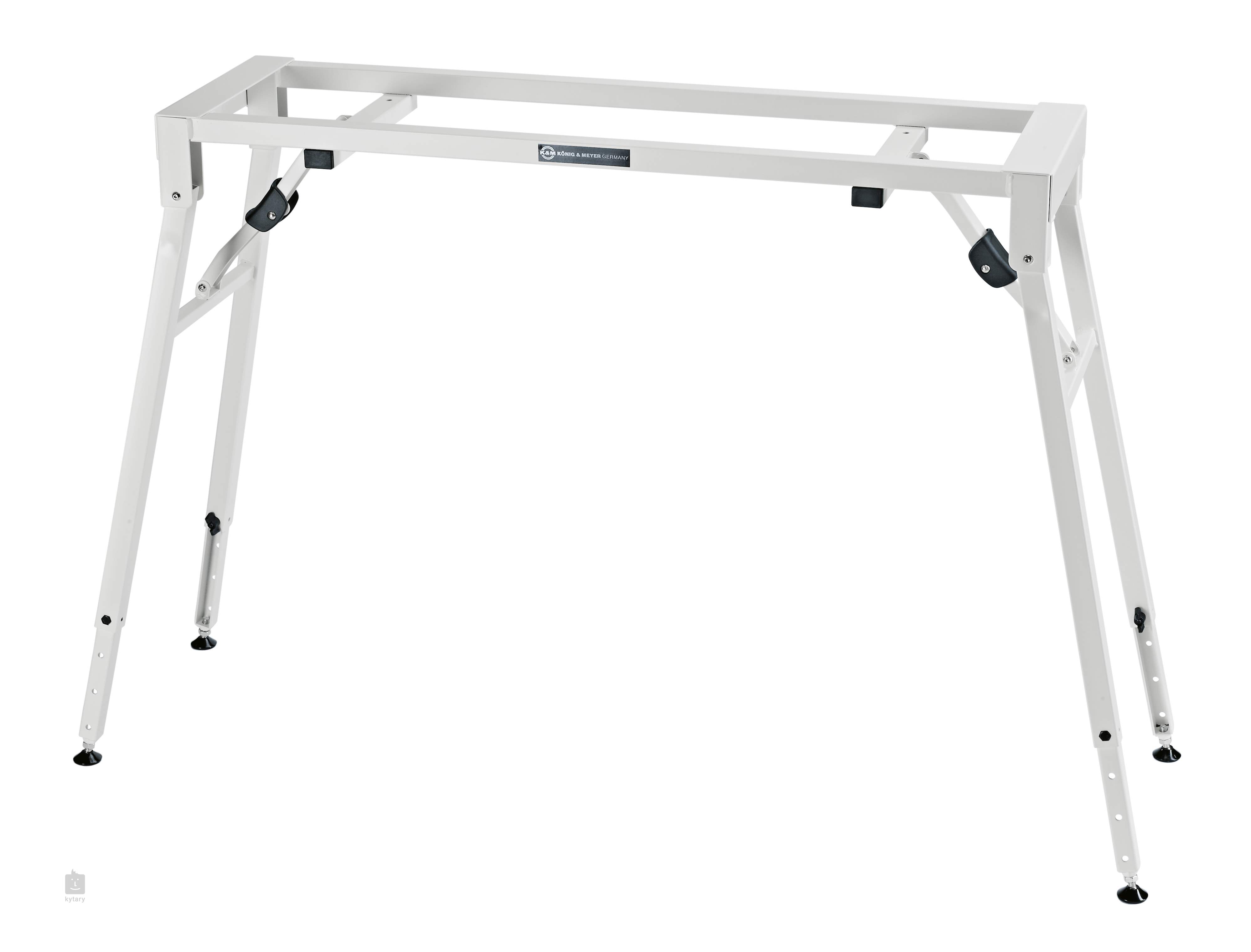 Professioneller Keyboardständer aus Stahl mit verstellbarer Höhe und Gewinde zum Ausgleichen unebener Flächen. Der Ständer ist außerdem leicht zusammenklappbar, so dass er sich sowohl für Studio- als auch für Live-Auftritte eignet. Der Ständer kann auch mit einer zweiten Ebene, einem Laptophalter oder einem Notenständer erweitert werden.