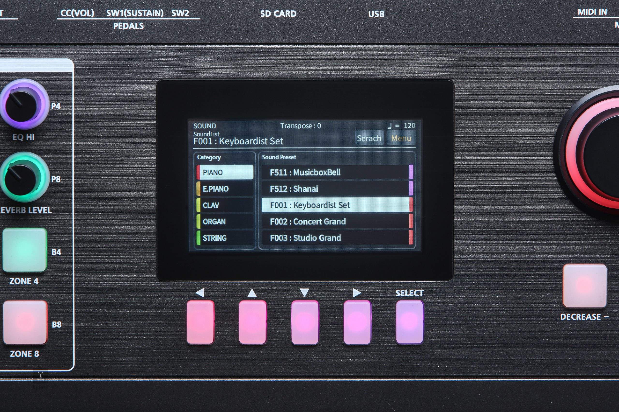 Das SP7 verfügt außerdem über eine Reihe von Anschlussmöglichkeiten, darunter MIDI und USB, so dass das Instrument problemlos in ein Heimstudio oder auf der Bühne zusammen mit anderem Musikequipment eingesetzt werden kann. Seine Kompaktheit und Tragbarkeit machen es zu einer idealen Wahl für Musiker, die live spielen oder auf Reisen sind.