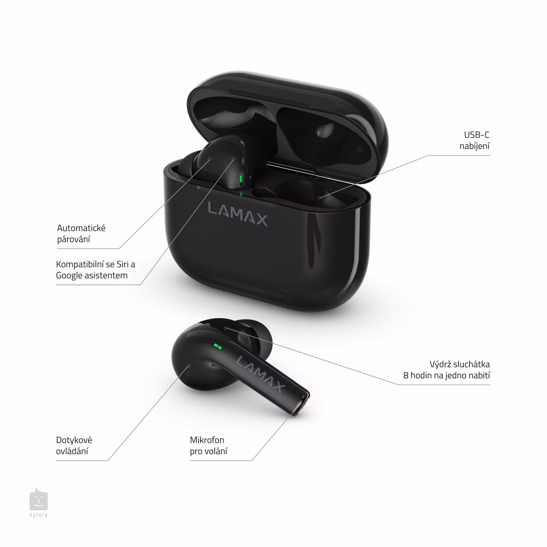 LAMAX Clips1 sind elegante, kabellose In-Ear-Kopfhörer mit großartigem Klang und superschneller Kopplung, die Sie beim Sport, auf Reisen und bei alltäglichen Aktivitäten schätzen werden. Mit bis zu 40 Stunden Akkulaufzeit, ohne unterwegs auf eine Steckdose treffen zu müssen, Touch-Bedienung und modernstem Bluetooth 5.1 mit einer Hördistanz von bis zu 10 Metern, USB-C-Ladefunktion und Batteriestatus-LED, abgestimmter LAMAX BeatBass-Sound für den Genuss von Bass-Grooves, moderne AAC- und SBC-Codecs zur Verbesserung der kabellosen Übertragungsqualität, automatisches Pairing und ein hochwertiges Mikrofon für nahtloses Telefonieren und die Kommunikation mit Smart Assistants wie Siri oder Google Assistant.