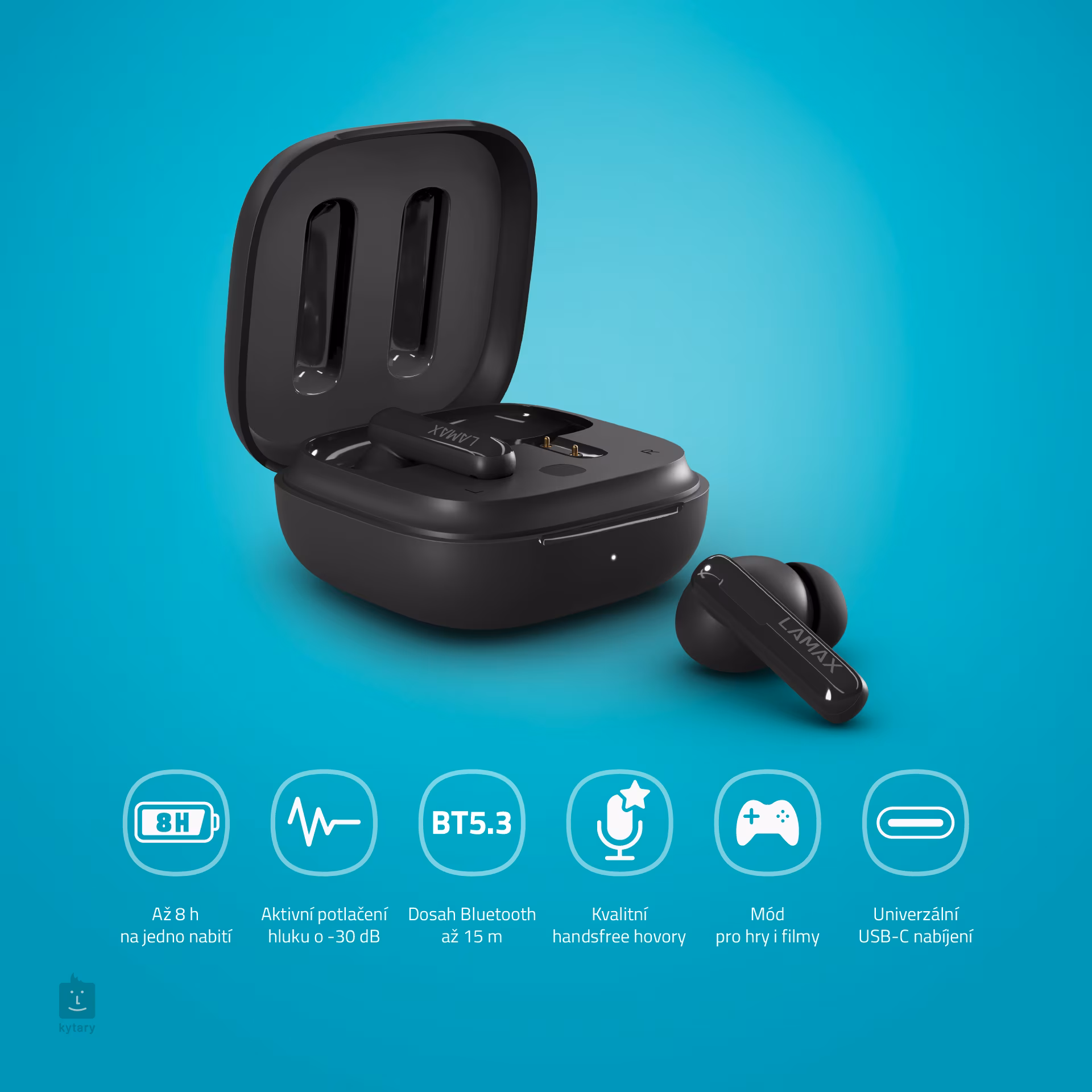 Der kabellose In-Ear-Kopfhörer LAMAX Clips1 Plus mit In-Ear-Füßen, schnellem Bluetooth 5.3, bis zu 8 Stunden Akkulaufzeit und aktiver Geräuschunterdrückung (ANC) bietet Ihnen das ultimative Hörerlebnis, wo immer Sie sind.