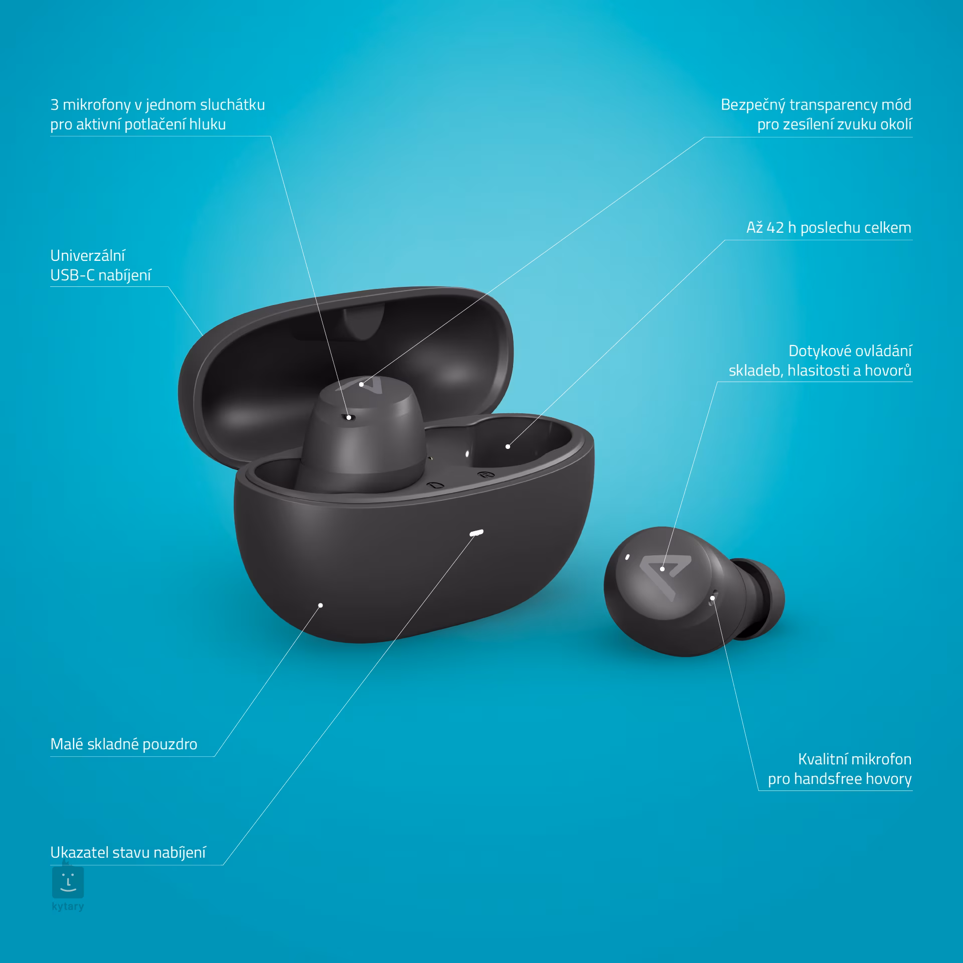 Die kabellosen In-Ear-Kopfhörer Lamax Dots3 ANC bieten bis zu 10 Stunden Akkulaufzeit (42 Stunden mit Ladeetui), einen ausgewogenen Klang dank der Lamax BeatBass-Technologie, aktive Geräuschunterdrückung (ANC), d. h. drei spezielle Mikrofone, die ständig die Umgebung überwachen und Außengeräusche um bis zu 40 Dezibel reduzieren, Bluetooth 5.3 mit einer Reichweite von bis zu 15 Metern, Transparenz-Mod, bei dem die ANC-Mikrofone die Umgebungsgeräusche verstärken und dich wach halten (beim Sport in der Stadt, beim Einkaufen usw.), Gaming-Mod mit noch geringerer Latenz, damit du potenzielle Feinde hinter jeder Ecke hören kannst, USB-C-Anschluss zum Aufladen und Verbinden mit anderen Geräten, intuitive Bedienelemente, kompaktes Design und Unterstützung für die Sprachassistenten Siri und Google Assistant.