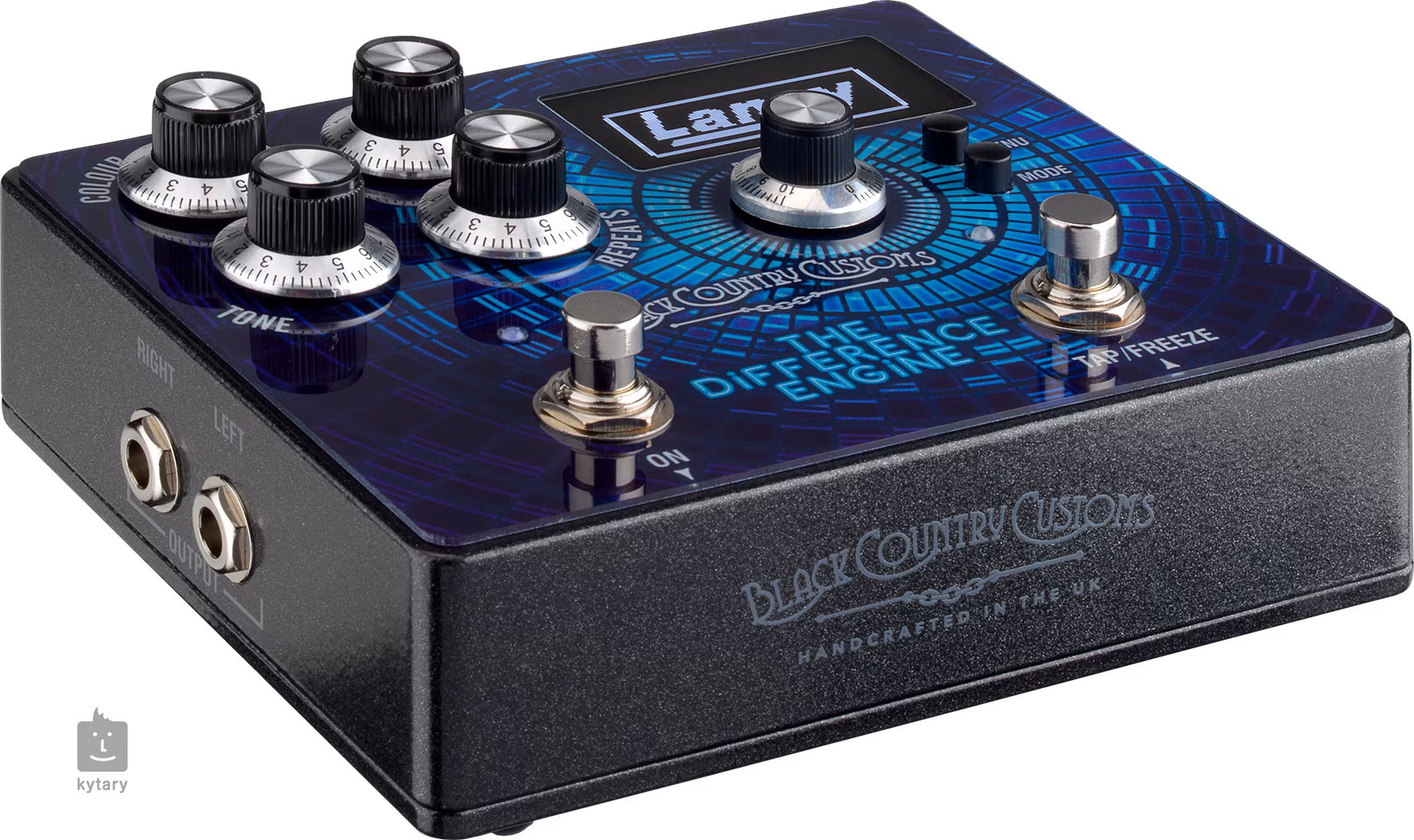 Der Laney BCC The Difference Engine Pedaleffekt bietet drei Arten von Delay-Effekten in einem kompakten Gehäuse, die eine bestimmte Ära grundlegend definiert haben - die Modellierung des klassischen analogen Tape-Echos, das auf dem Sound des klassischen RE501 (max. Delay-Zeit 1250 ms) aufbaut, ein digitales Delay, das auf der Grundlage von 80er-Jahre-Delay-Pedalen wie dem KORG SDD3000 (max. Delay-Zeit 2500 ms) mit den Vorteilen von Tap-Tempo- und Freeze-Funktionen aufgebaut ist, und ein dynamisches digitales Delay, das auf dem großen pulsierenden Sound der 90er-Delays aufbaut. Natürlich können Sie den Charakter jedes Effekttyps einstellen, d.h. den Sound von einem oder mehreren Köpfen eines virtuellen Bandes, das Alter des Bandes simulieren, den Onset/Attack und Reverb/Release des dynamischen Delays einstellen oder die optionale Trails-Funktion, d.h. ob der Delay-Effekt nachhallt, wenn die Box ausgeschaltet ist.