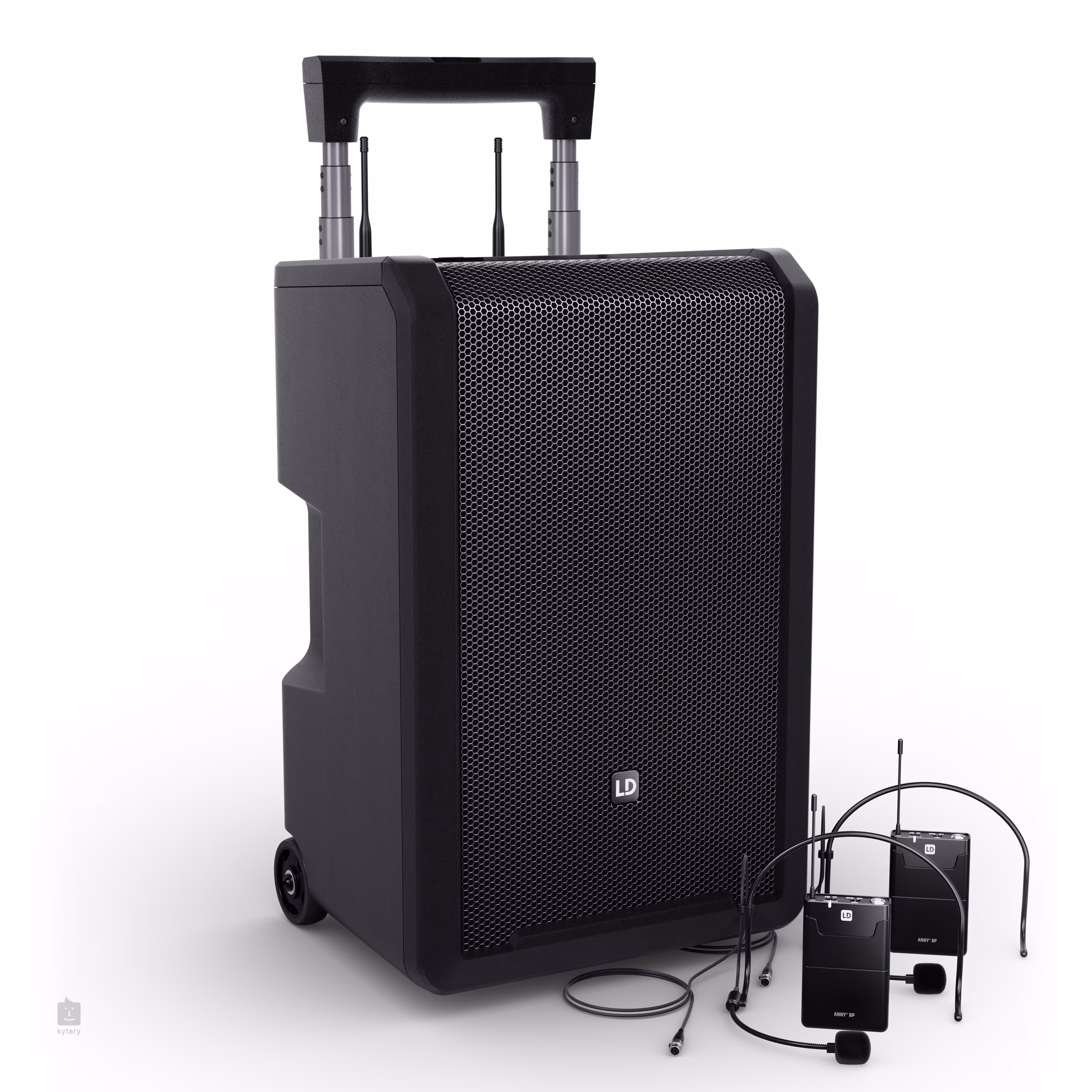 Das LD Systems ANNY 10 BPH 2 B8 ist ein mobiles PA-Set, das die kompakte Lautsprecherbox ANNY 10 mit eingebautem drahtlosen FM-Empfängermodul und zwei "Headset"-Mikrofonen mit zwei Taschensendern umfasst.