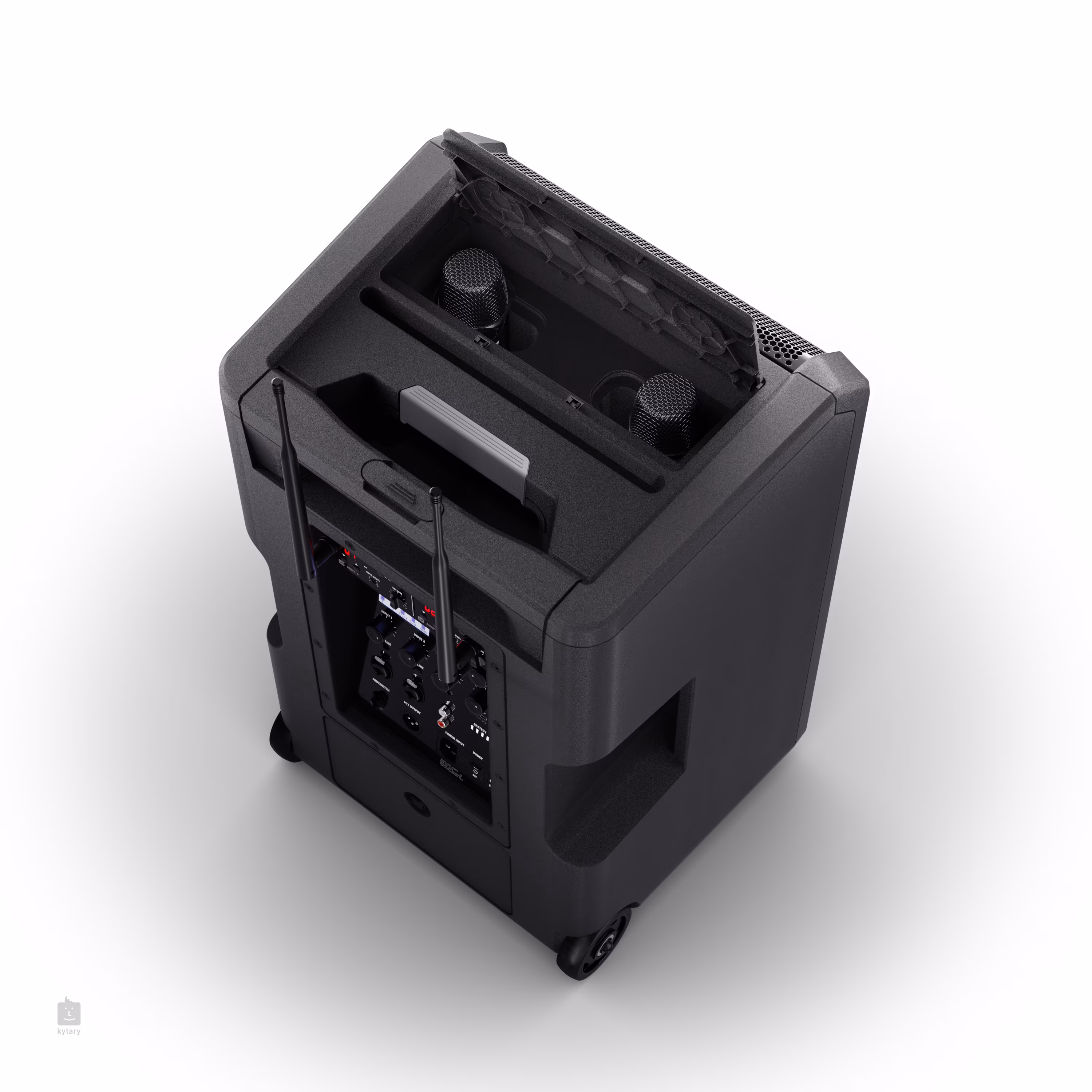 Drahtlose Übertragung Der Lautsprecher ANNY 10 HHD 2 B5 ist mit einem FM-Modul für den drahtlosen Signalempfang im Frequenzband 584 - 608 MHz und kompatiblen dynamischen Gesangsmikrofonen ausgestattet, die über 12 Kanäle über eine Entfernung von bis zu 80 m synchronisiert werden können. Jedes drahtlose Mikrofon wird mit zwei AA-Batterien betrieben, die eine Betriebszeit von 8 Stunden ermöglichen.