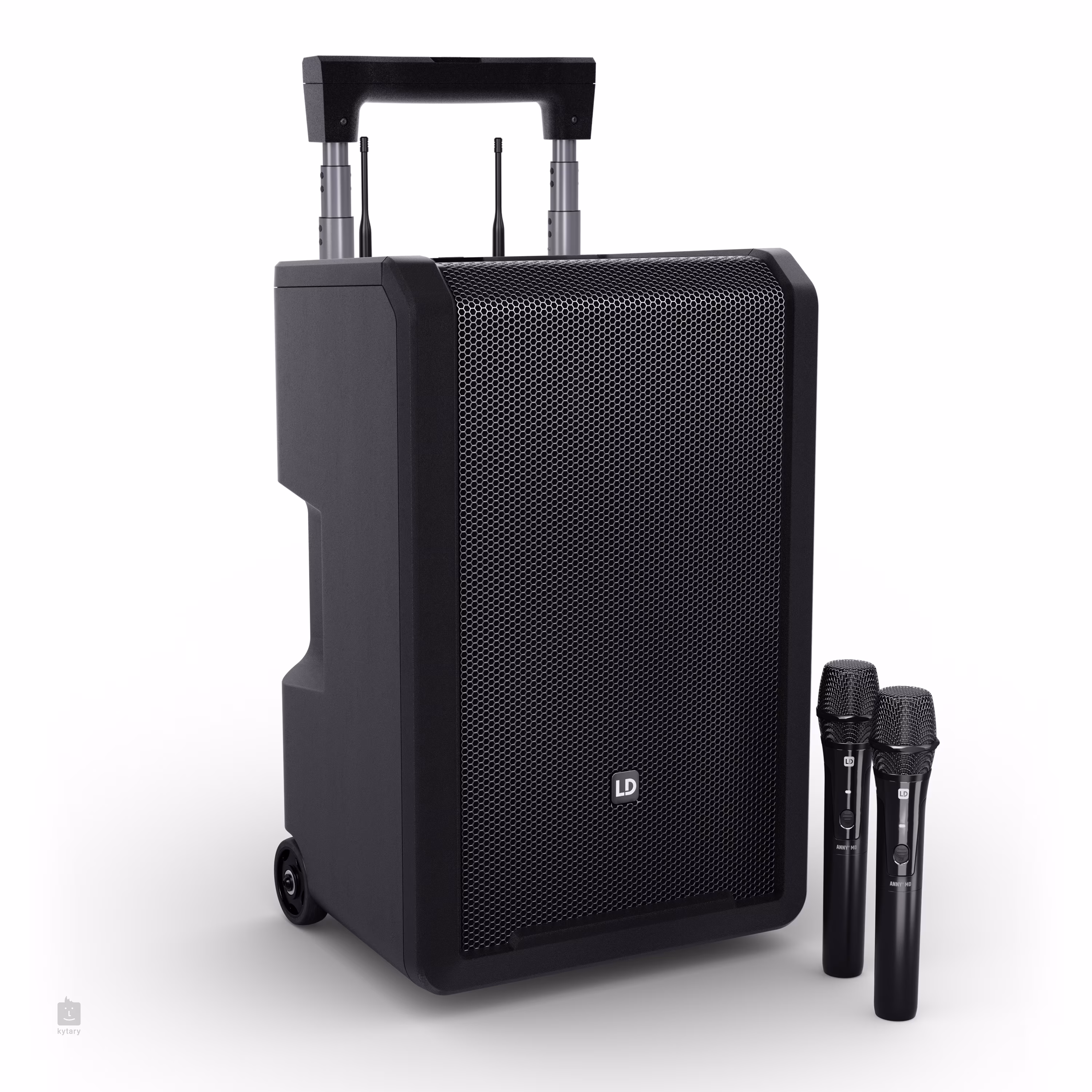 Das LD Systems ANNY 10 HHD 2 B6 ist ein mobiles Beschallungssystem, das den Kompaktlautsprecher ANNY 10 mit eingebautem drahtlosen FM-Empfängermodul und zwei dynamischen "Handheld"-Mikrofonen mit Sender umfasst.