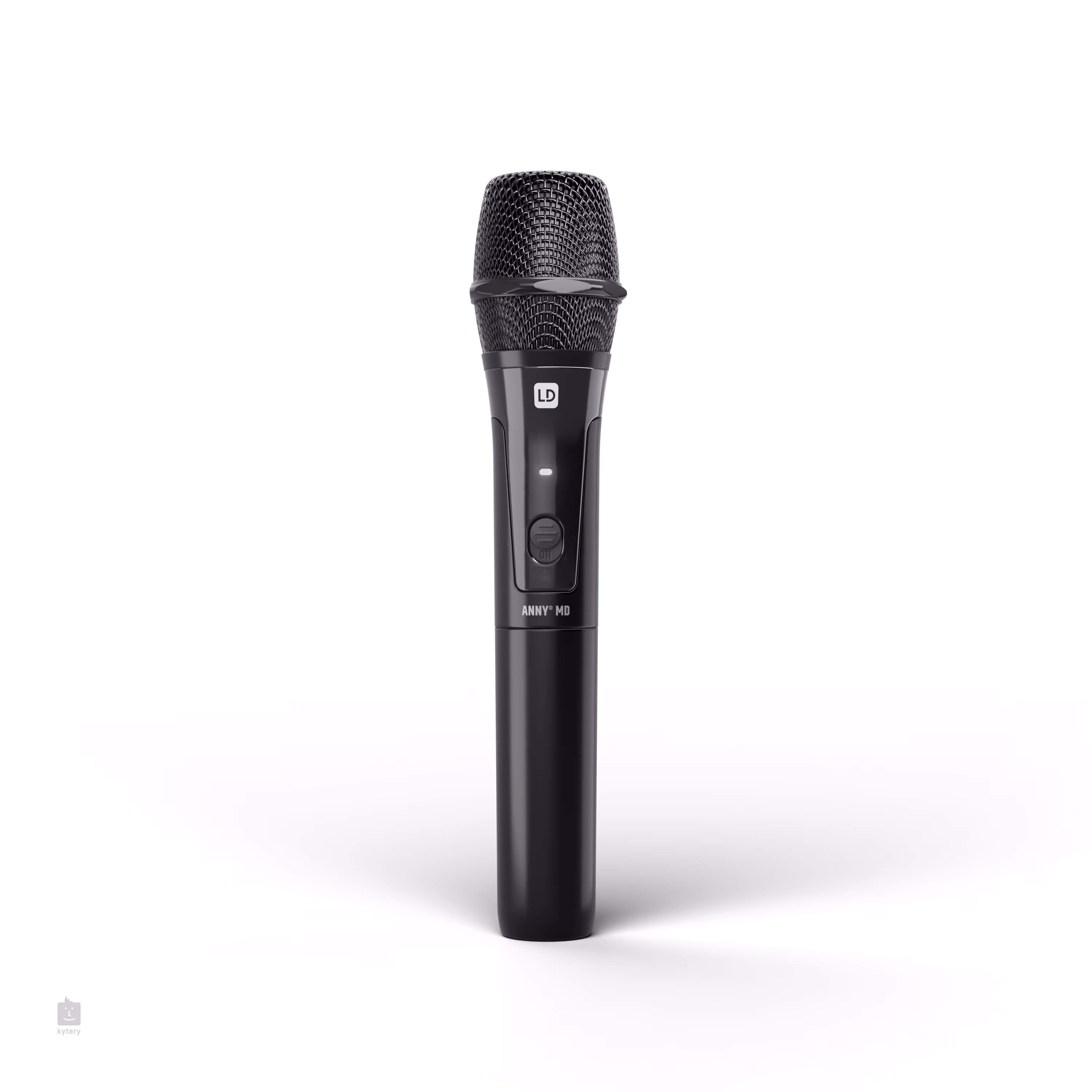 Das LD Systems ANNY 10 HHD B5 ist ein mobiles Beschallungssystem, das die kompakte Lautsprecherbox ANNY 10 mit eingebautem drahtlosen FM-Empfängermodul und einem dynamischen "Handheld"-Mikrofon mit Sender umfasst.