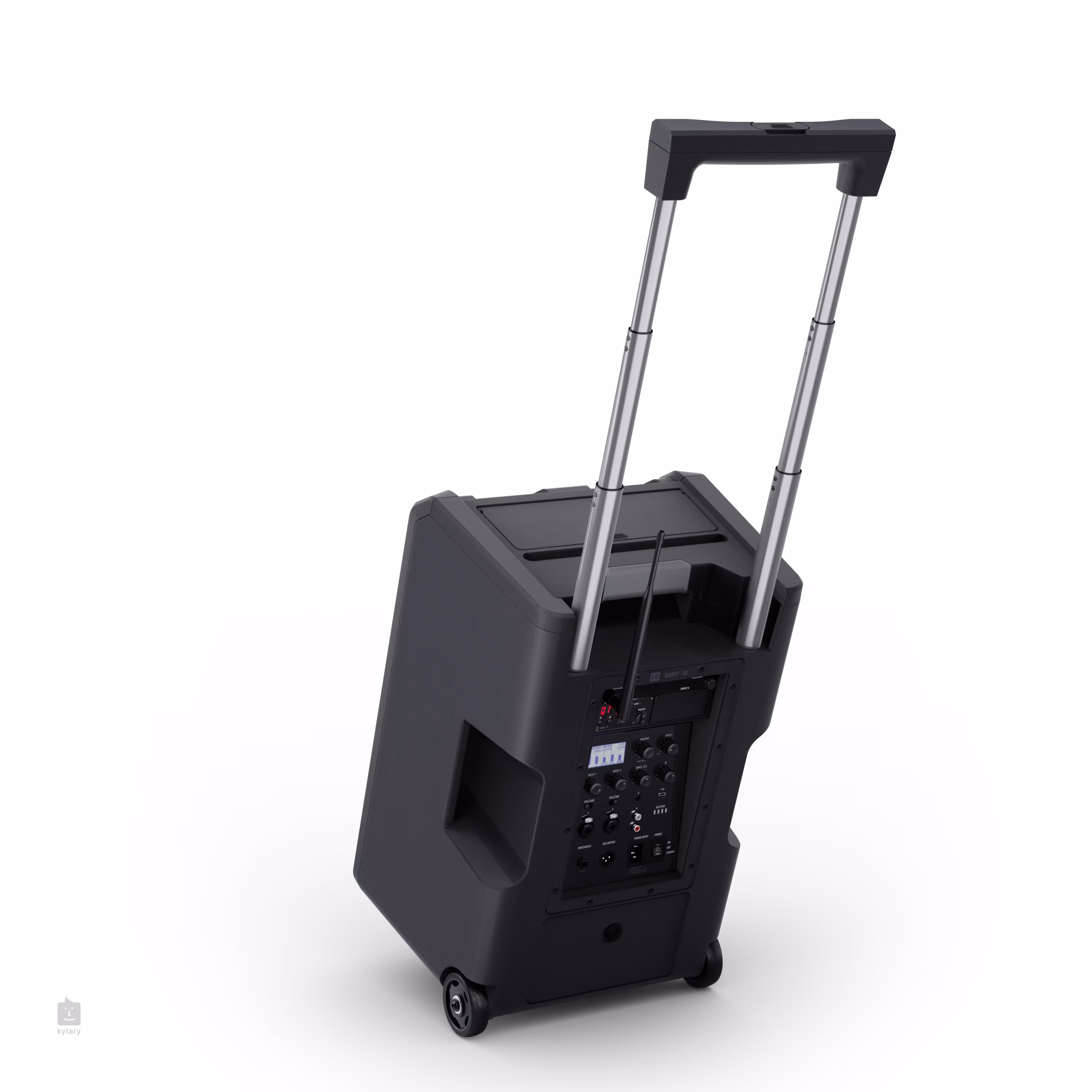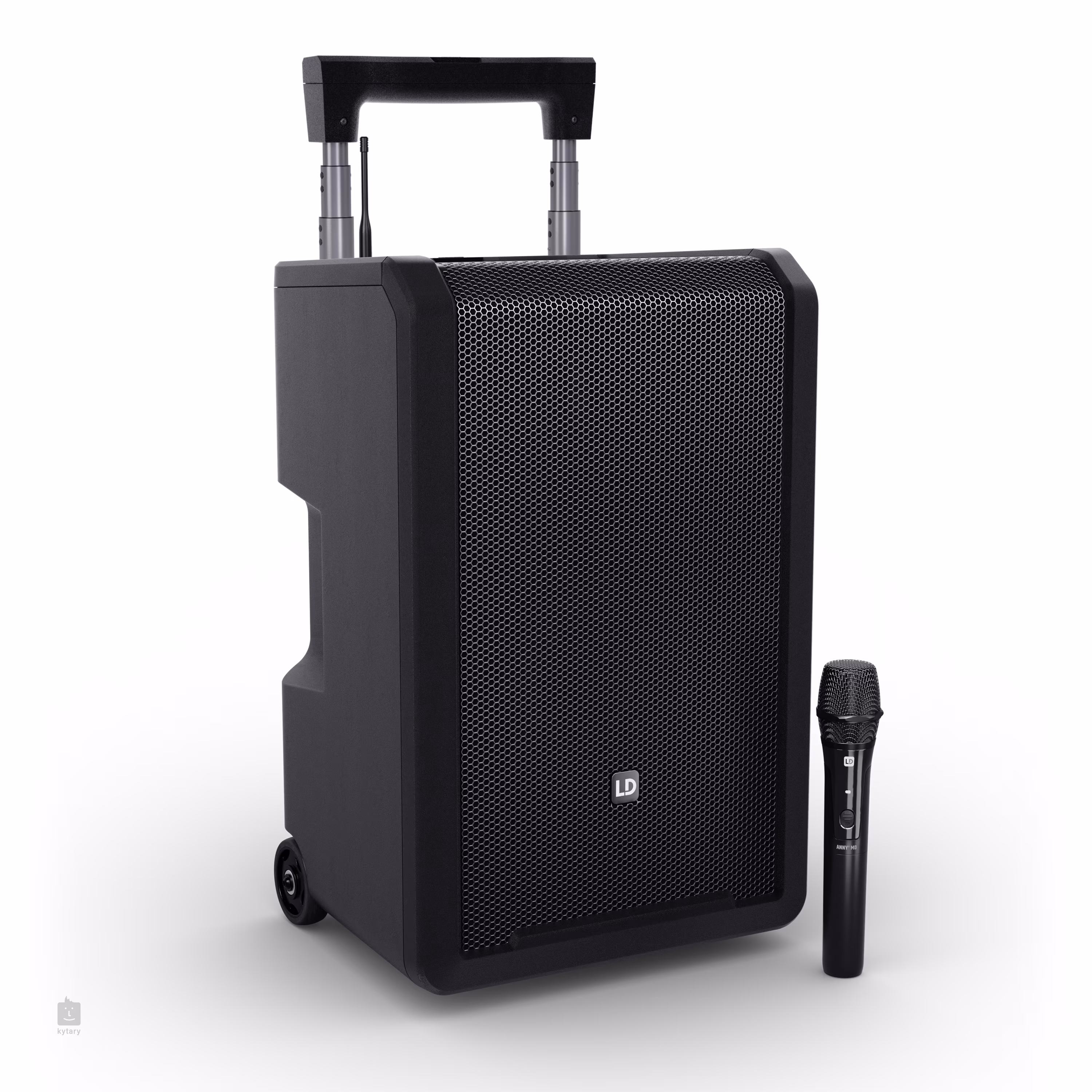 Das LD Systems ANNY 10 HHD B8 ist ein mobiles Beschallungssystem, das den Kompaktlautsprecher ANNY 10 mit eingebautem drahtlosen FM-Empfängermodul und ein dynamisches "Handheld"-Mikrofon mit Sender umfasst.