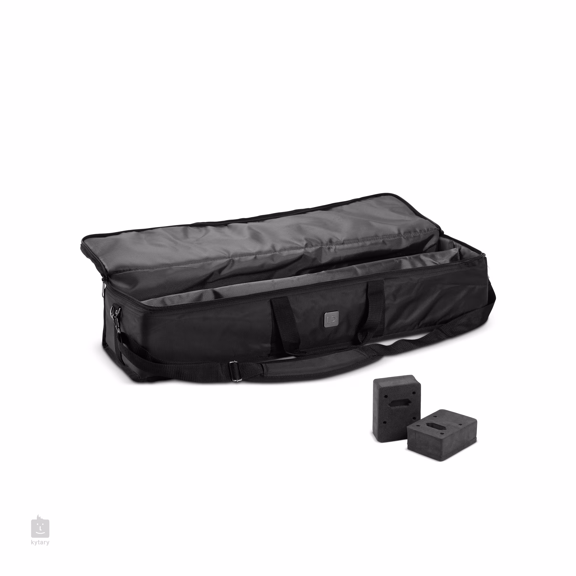 Die gepolsterte Transporttasche für die MAUI 28 G3-Säulenlautsprecher besteht aus wasserfestem 1680er Nylon und verfügt über eine gepolsterte, 8 mm dicke Innenblende, die Kratzer an den Lautsprechern verhindert, Schaumstoffabdeckungen für die Multipin-Anschlüsse, einen verstellbaren Schultergurt und gummierte Füße.