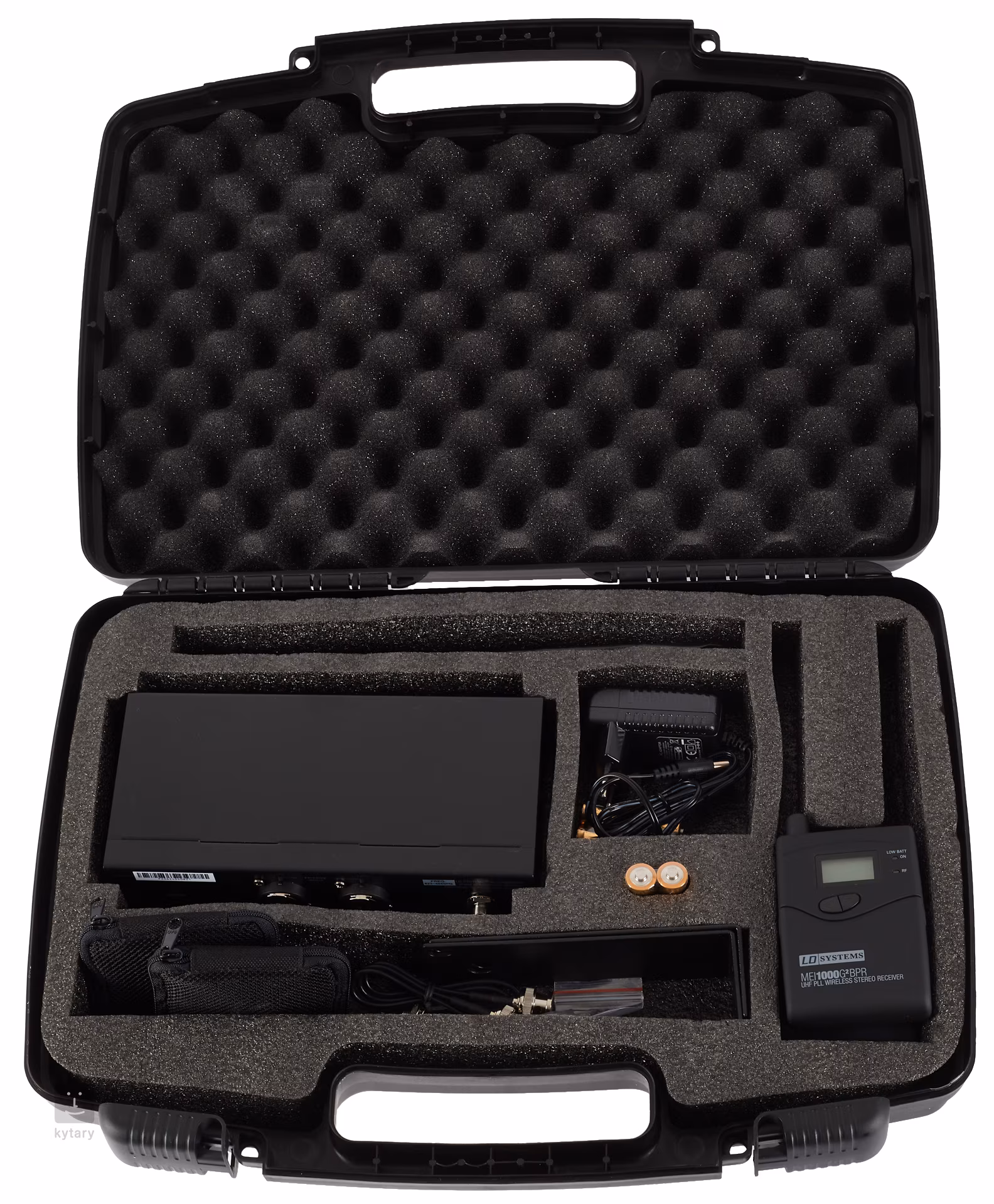 Im Lieferumfang enthalten sind die Empfänger - 2x Taschensender 1000 G2 B5, Sender 1000 G2B5, 2x Kopfhörer, 2x Ohrstöpsel, Adapter, Rack-Halterungen und Tragetasche.