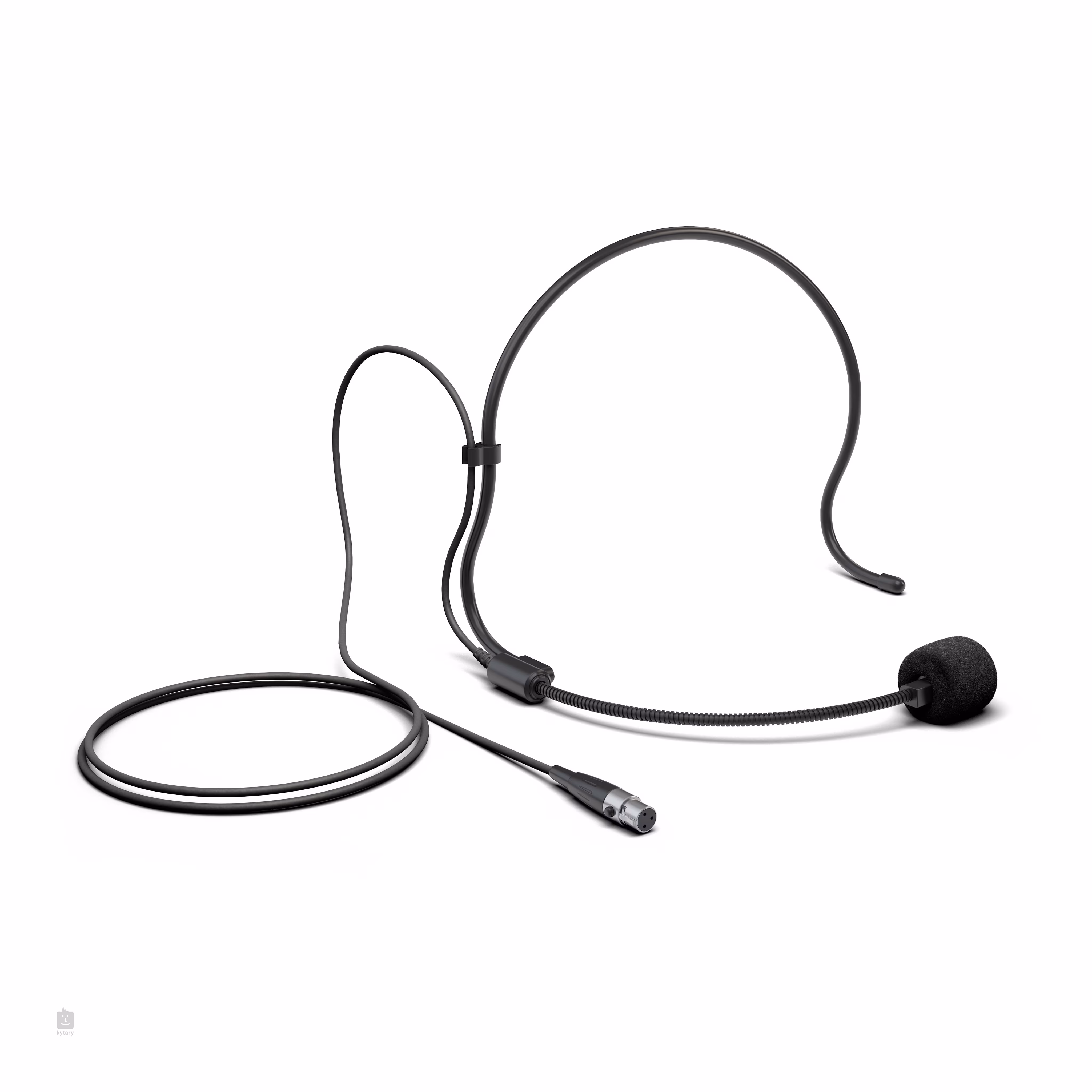 Zum Set gehört ein Headset-Kondensatormikrofon mit Nierencharakteristik und einem Übertragungsbereich von 20 Hz - 20 kHz. Das Mikrofon wird über eine 5-V-Phantomspeisung versorgt und verfügt über einen Mini-XLR-Anschluss zum Anschluss an den Sender.