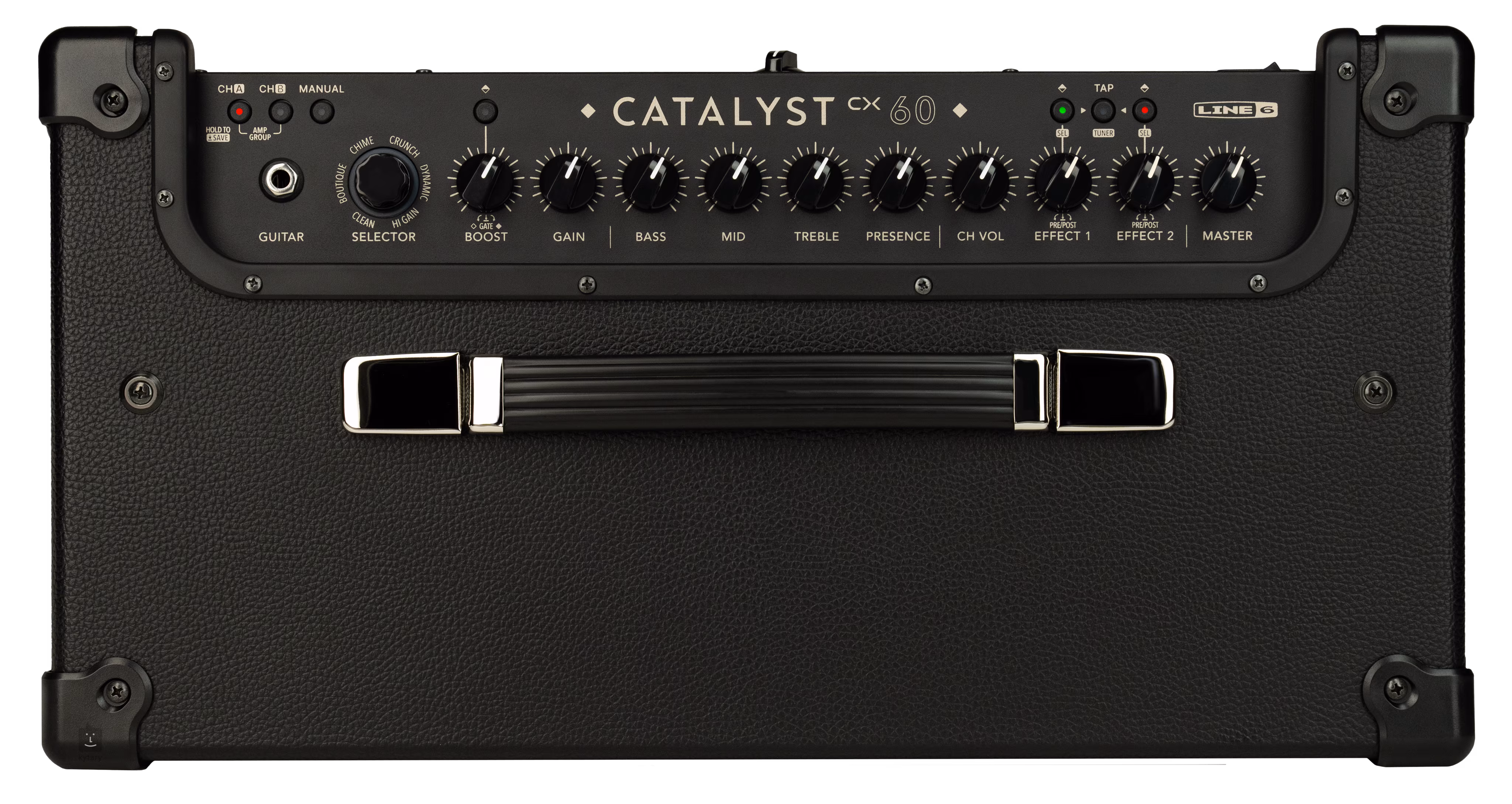 Die Catalyst CX-Serie von Line 6 bietet drei zweikanalige Gitarren-Modeling-Combos, die das Gefühl traditioneller Gitarren vermitteln und dabei noch vielseitiger sind. Diese Combos bieten 200 W, 100 W und 60 W Leistung, zwölf Gitarren-Voicings, die von den ehrwürdigen Helix-Gitarren und -Effektprozessoren übernommen wurden (von kristallklaren Sounds bis hin zu modernem High-Gain, jedes Voicing wird mit einem optionalen Custom Boost geliefert), 24 HX-Effekte in vier Kategorien (Reverb, Delay, Modulation, Pitch/Filter), Tap-Tempo-Funktion, eingebautes Stimmgerät, schaltbare Stromversorgung einschließlich Mute-Funktion für die Aufnahme/Wiedergabe mit Kopfhörern (Mute, ½W , 50% Leistung, 100% Leistung) und Standard-Bedienelemente (Dreiband-EQ, Gesamtlautstärkeregler, Kanallautstärke, Gain, Boost und integrierte Effekte).