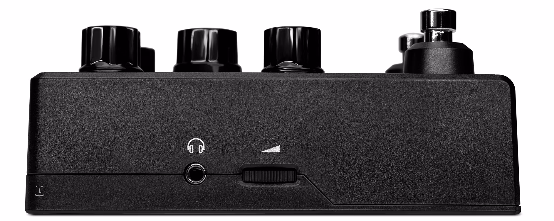 Unter den Buchsen des Effekts finden Sie einen Mono-Eingang, zwei Ausgänge für die Wiedergabe von Stereoeffekten, einen Kopfhörerausgang, einen Ausgang für den Anschluss eines externen Expression-Pedals und einen USB-C-Anschluss für die einfache Verbindung mit Ihrem Computer oder Telefon. Dank des USB-Anschlusses kannst du die Box auch als Reise-Audiokarte verwenden. Der LINE6 POD Express Guitar Black kann mit einem 9V-Adapter (nicht im Lieferumfang enthalten) oder drei AA-Batterien betrieben werden.