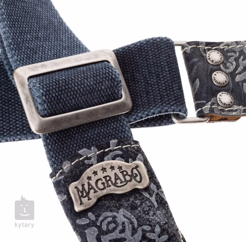 Die italienische Marke Magrabó ist bekannt für ihre handgefertigten Gurtbänder, die präzise Handwerkskunst, elegantes Design und hohen Tragekomfort miteinander verbinden. Dieses Modell ist aus hochwertiger Baumwolle gefertigt und mit Lederenden zur Befestigung versehen. Es besteht aus den feinsten Materialien, die ihm Haltbarkeit und Langlebigkeit verleihen. Mit der Metallschnalle lässt sich der Gurt von 95 bis 160 cm verstellen. Ideal für elektrische, akustische und Bassgitarre.