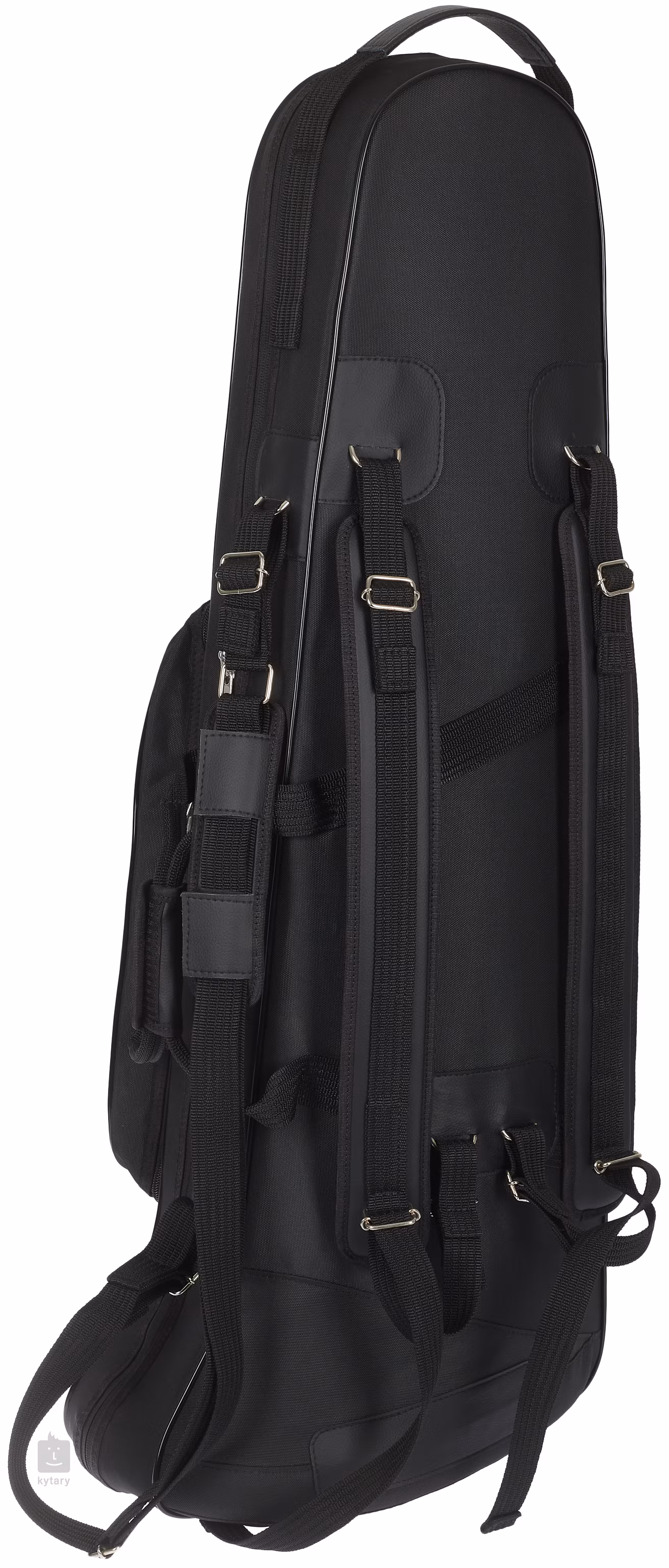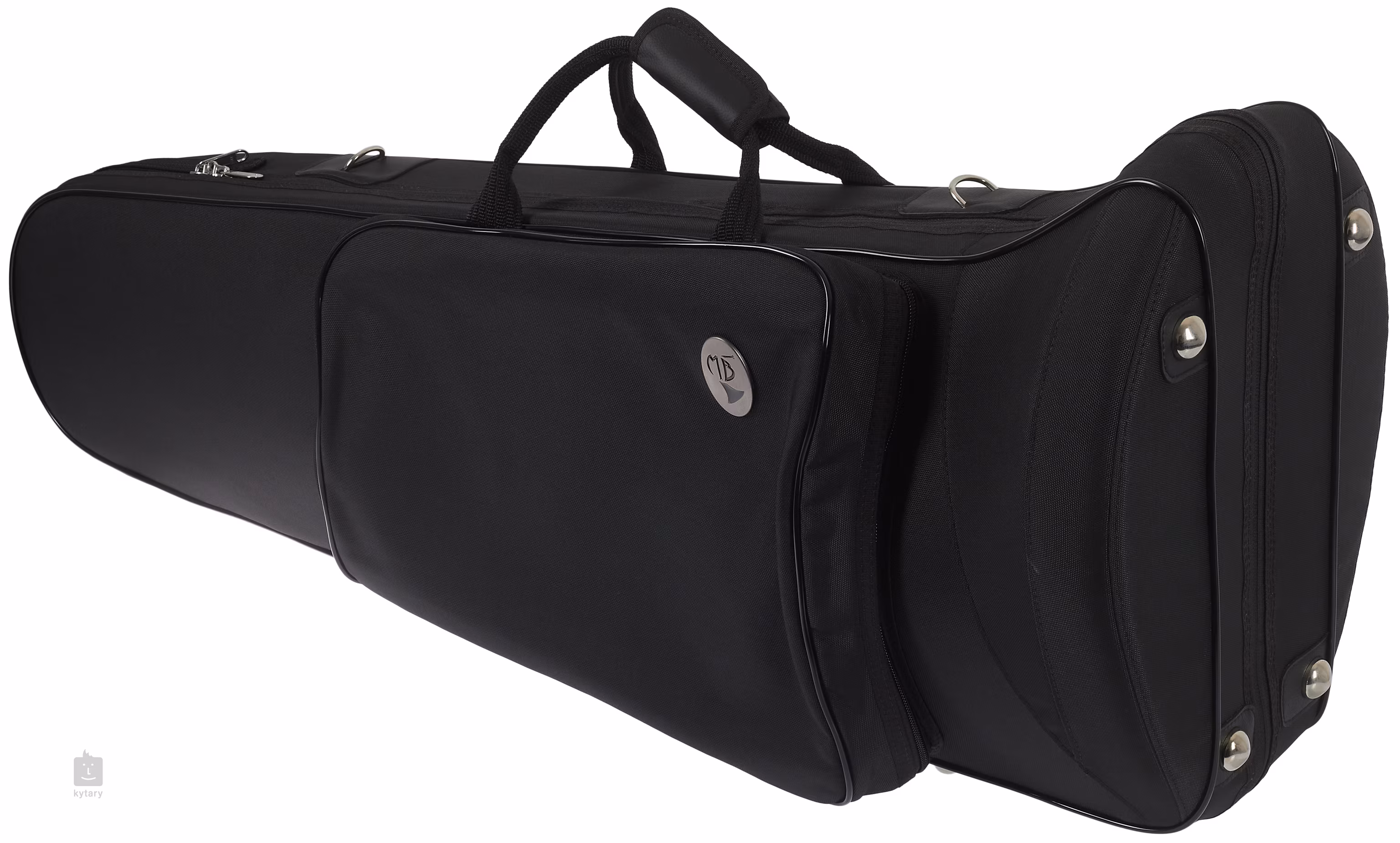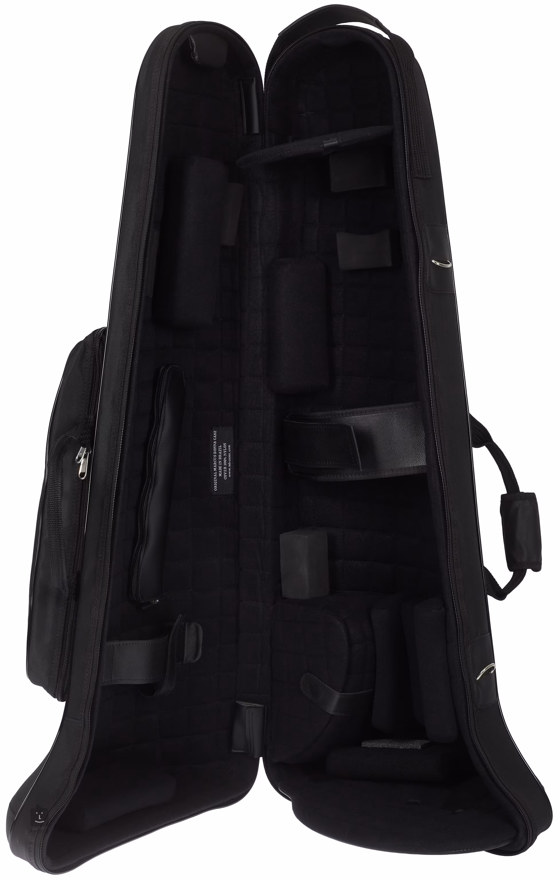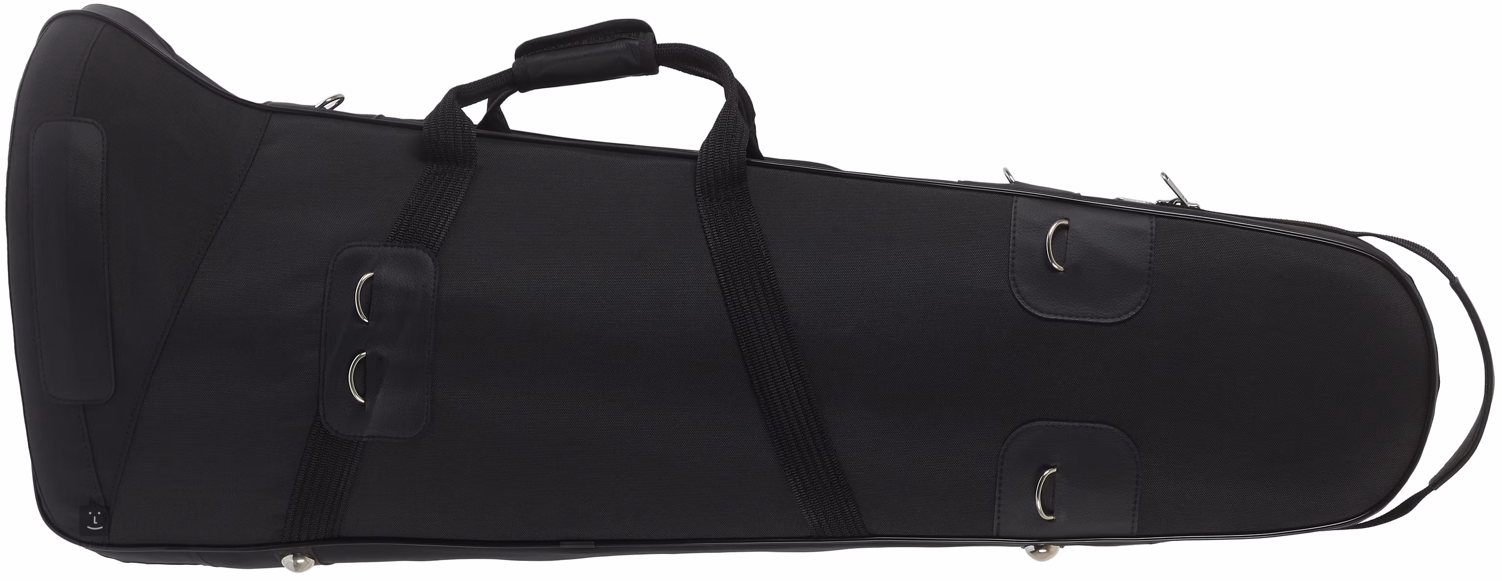 Bastposaunenkoffer mit Resonanzbodengröße bis zu 10,5 Zoll (267 mm). Die Glasfaser- oder Kohlefaserkonstruktion ist außen mit einer Nylonhülle und innen mit nylonbeschichtetem Schaumstoff überzogen. Der Boden der Posaune wird unter dem Gehäusedeckel befestigt und so positioniert, dass er den Korpus nicht berührt. Die Klettverschlüsse können so eingestellt werden, dass die Instrumente genau in ihrer Position verriegelt werden.