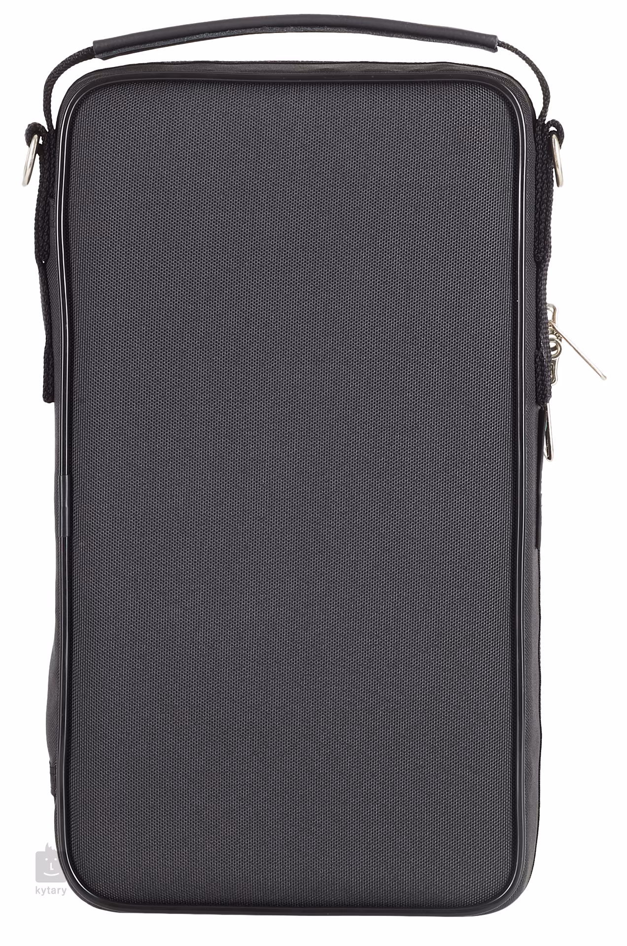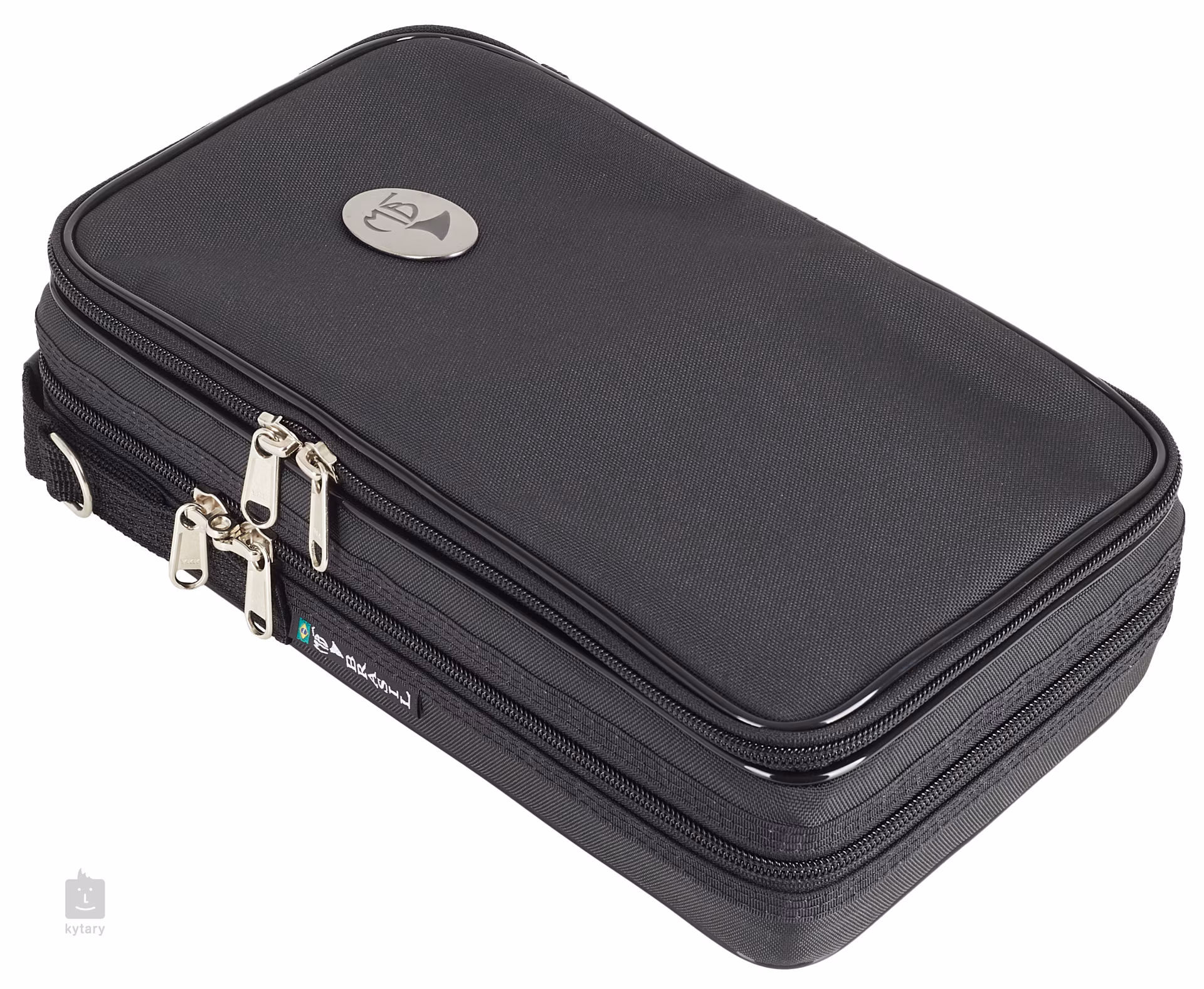 Oboenkoffer mit abnehmbarem Schultergurt und Außentasche für kleines Zubehör und Noten. Die Glasfaser- oder Kohlefaserkonstruktion ist außen mit einer Nylonhülle und innen mit nylonbeschichtetem Schaumstoff überzogen.