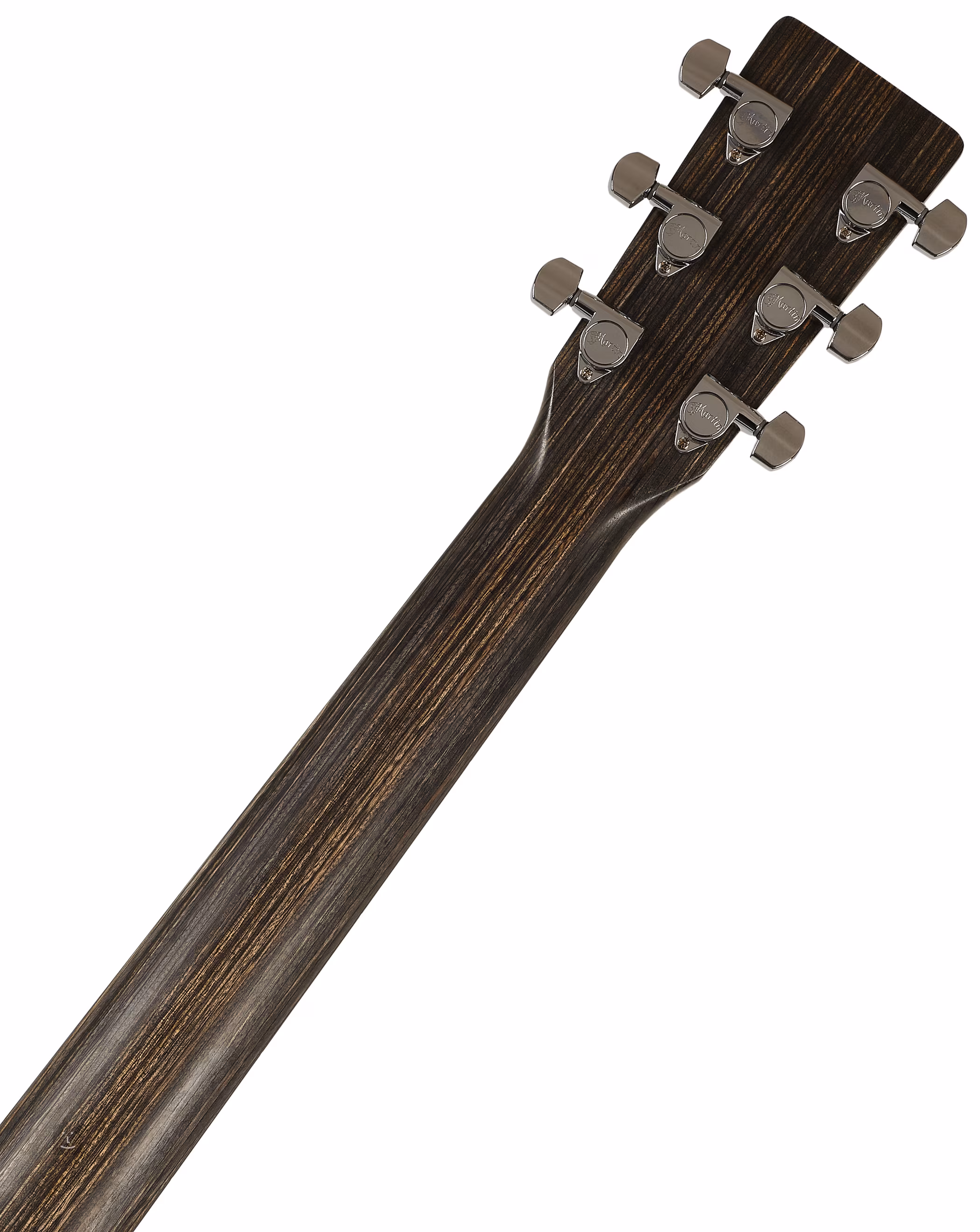 Die Martin 0-X1 Black ist eine kompakte 0/Konzert-Akustikgitarre aus der günstigeren X-Serie, die in Mexiko hergestellt wird. Der Gitarrenkorpus ist aus modernem HPL (High Pressure Laminate) Material gefertigt. Der laminierte Hals (Natural Birch Laminate) ist auf ein Richlite Composite Griffbrett mit 20 Bünden geklebt. Dieses umweltfreundliche Material, das optisch dem Ebenholz ähnelt, zeichnet sich durch hervorragende akustische Eigenschaften, Haltbarkeit und Stabilität aus.