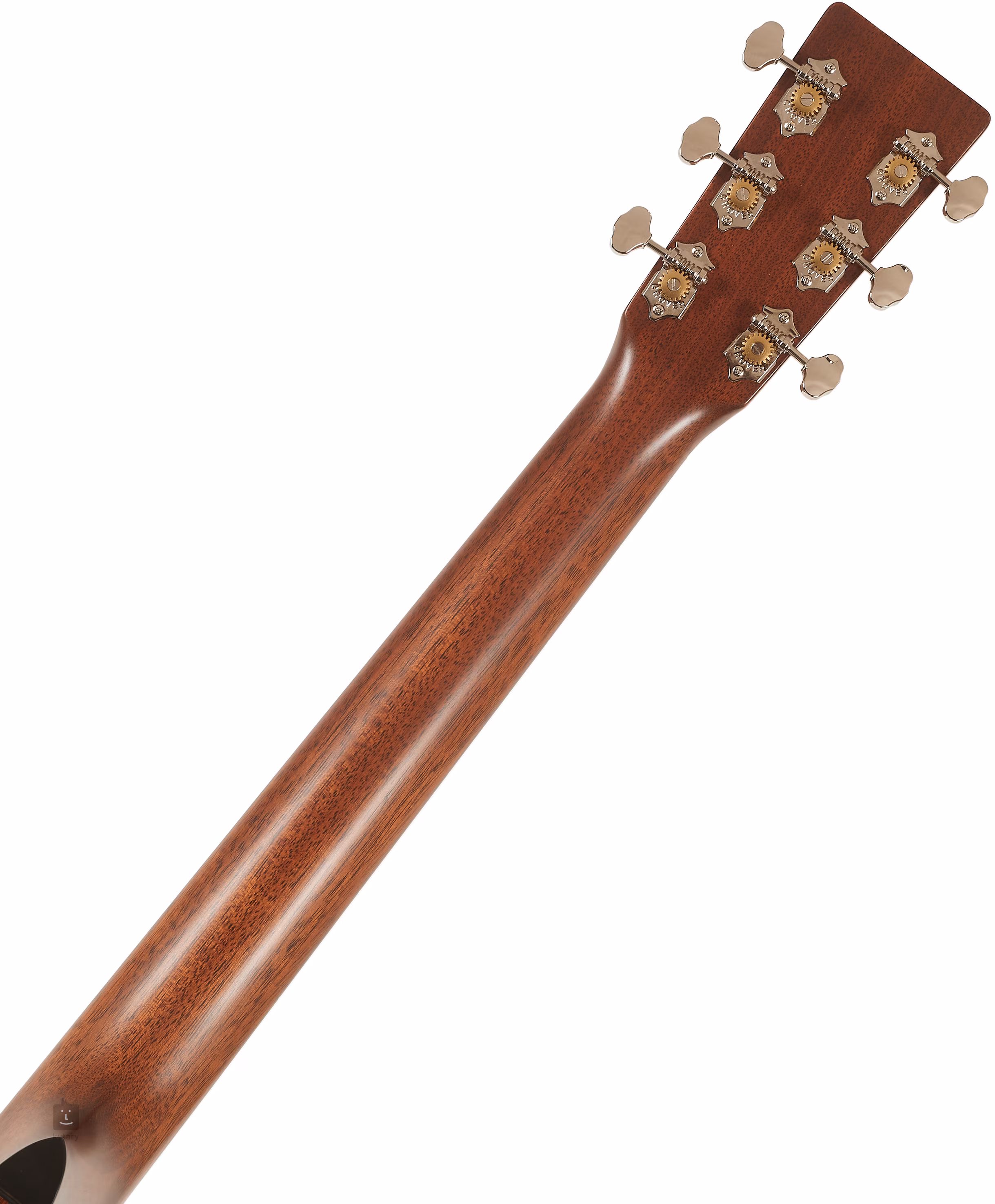 Der Mahagoni-Hals ist mit einem Ebenholz-Griffbrett mit zwanzig Bünden verleimt. Die Orientierung auf seiner Oberfläche wird durch Perlmutt-Positionspunkte erleichtert. Präzises Stimmen und gutes Sustain werden durch den Sitz der Saiten über den kompensierten Sattel und den Knochen-Nullbund in der offenen Nickelmechanik und dem Ebenholz-Griffbrett gewährleistet. Das stilvolle Aussehen des Instruments wird durch die Satinierung des Korpus, die Amberburst-Deckenfarbe, eine Rosette aus schwarzen und weißen Ringen und ein Schlagbrett aus Schildpatt-Imitat, das auch den Lack der Gitarre vor Kratzern schützt, unterstrichen.