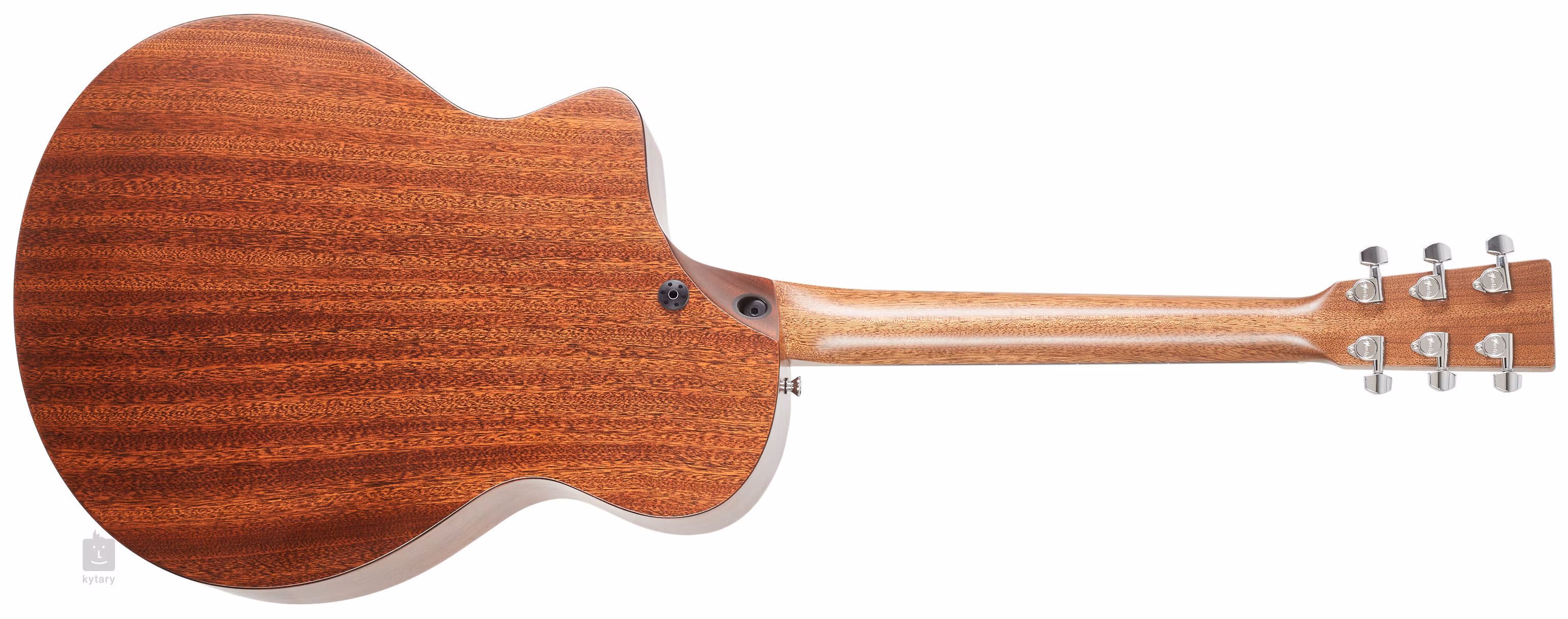 Die Martin SC-10E-02 elektroakustische Gitarre ist ein modernes Instrument mit einer neuen, gitarrenfreundlichen und komfortablen asymmetrischen Korpusform und einem exzellenten Griffbrett über die gesamte Länge des Halses (patentiertes Sure Align System). Der Korpus des Instruments ist aus Sapeli gefertigt, einem Holz, das in seinen Eigenschaften, seinem Aussehen und seinen botanischen Merkmalen mit Mahagoni verwandt ist (oft als "Sapeli-Mahagoni" bezeichnet). Auf den Hals aus ausgewähltem Hartholz, der nicht standardmäßig am dreizehnten Bund mit dem Korpus verbunden ist, ist ein Griffbrett aus dem modernen Verbundwerkstoff Richlite geklebt, das mit zwanzig Bünden versehen ist. Die Spiel- und Akustikeigenschaften der Gitarre werden durch einen ergonomisch geformten Halsfuß und eine spezielle, reduzierte X-Riffelung (Tone Tension X Brace) verbessert.
