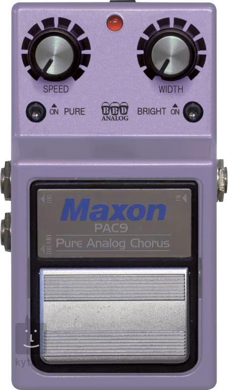Der analoge Stereo-Chorus Maxon PAC-9 PURE ANALOG CHORUS bietet einen satten, organischen Chorus-Effekt-Sound, der weit entfernt ist von den dünnen, zischenden Klängen der Chorus-Boxen der Vergangenheit. Mit seinem erweiterten LFO-Bereich kann der PAC-9 auch klassische Rotary-Speaker-Effekte erzeugen. Zusätzlich zu den Hauptreglern, die die Geschwindigkeit und Intensität der Effektmodulation bestimmen, kann die Form des Chorus-Effekts mit zwei Schaltern beeinflusst werden - der Pure-Schalter hebt das Delay-Signal um 4 dB an, um einen dramatischen Tremolo-Effekt zu erzeugen, während der Bright-Schalter die Bässe des Delay-Signals beschneidet, um es traditioneller klingen zu lassen. Der Stereoausgang des Pedals bietet Mono-, Stereo- und invertierte Monoanschlüsse.